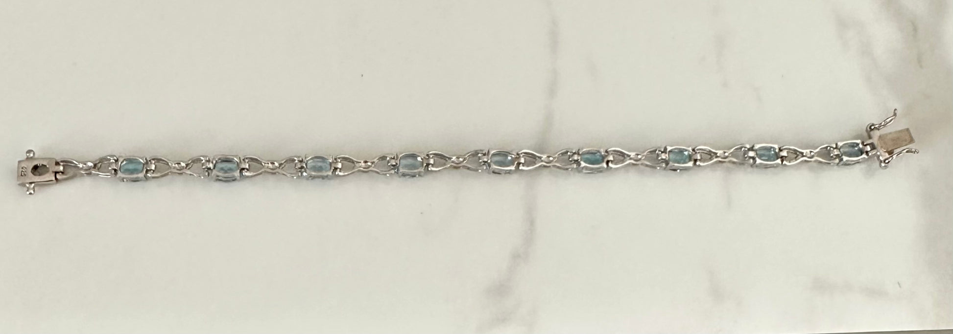Womens White Gold Rhodium Over Solid Sterling Silver 9.0 CTW Swiss Blue Topaz 7.5 Inch Bracelet.