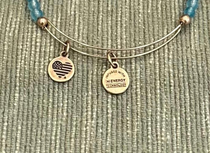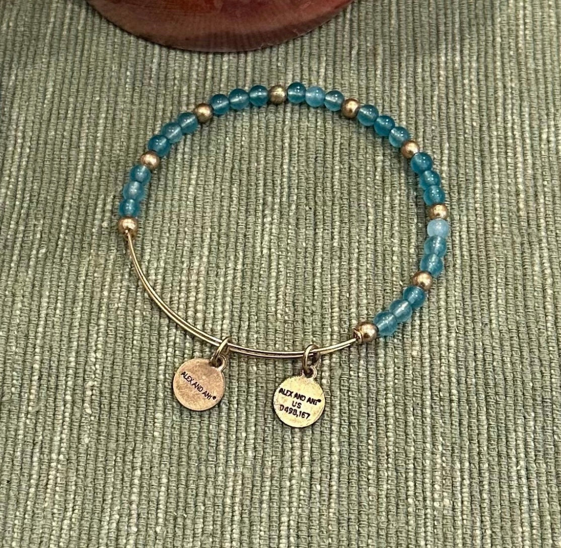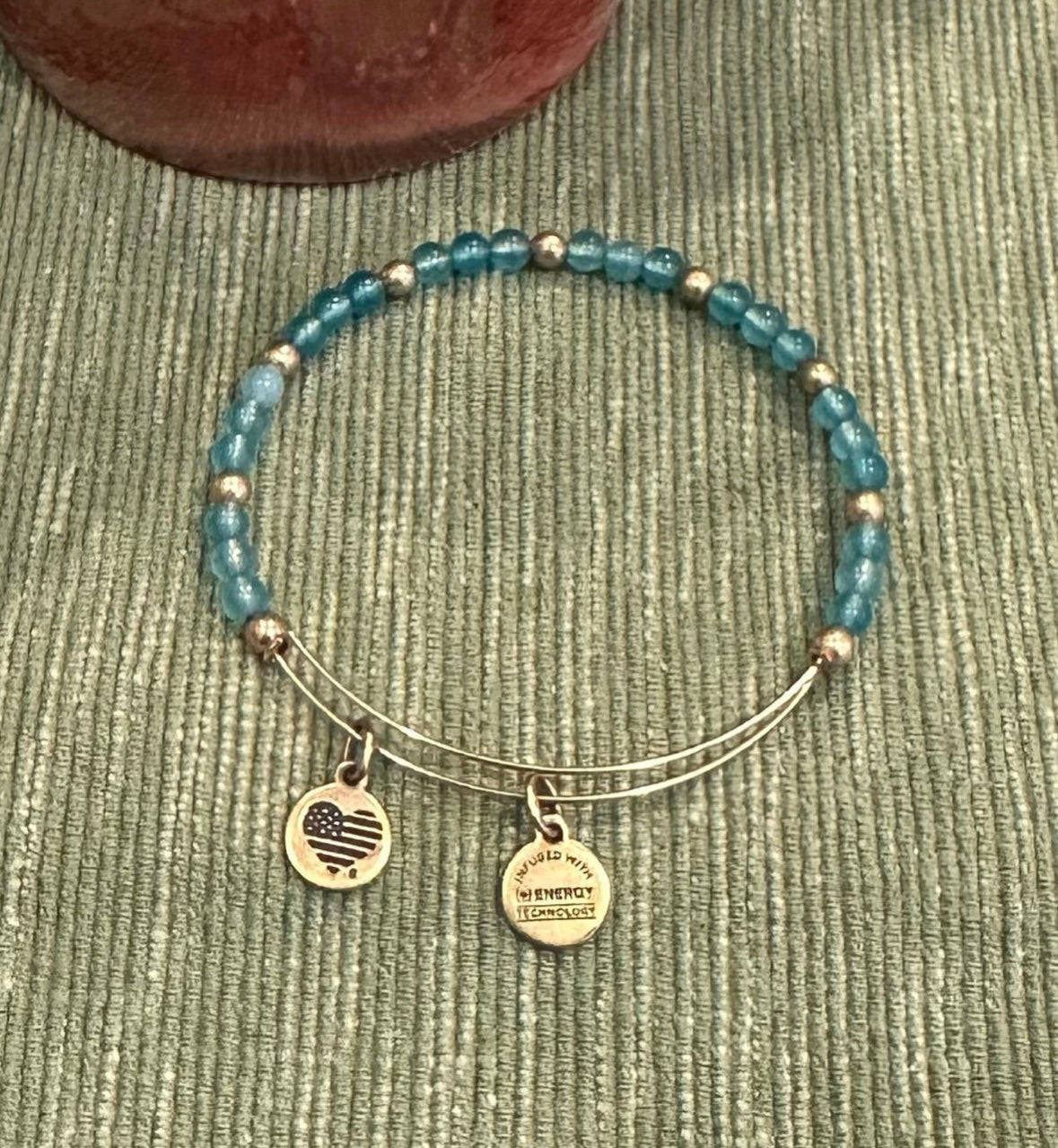 Alex and Ani " Breeze " Blue/Green Beaded Gold Tone Charm Bangle Adjustable 7”Inch Bracelet