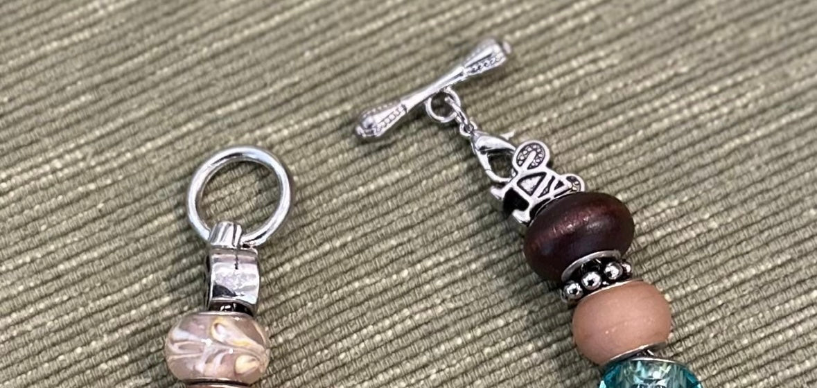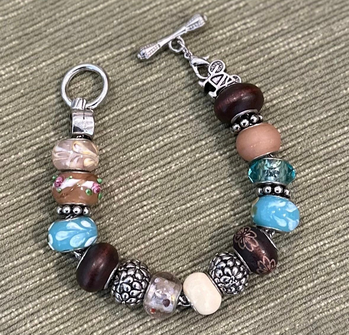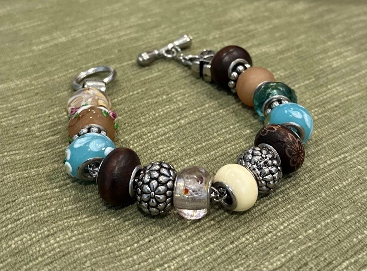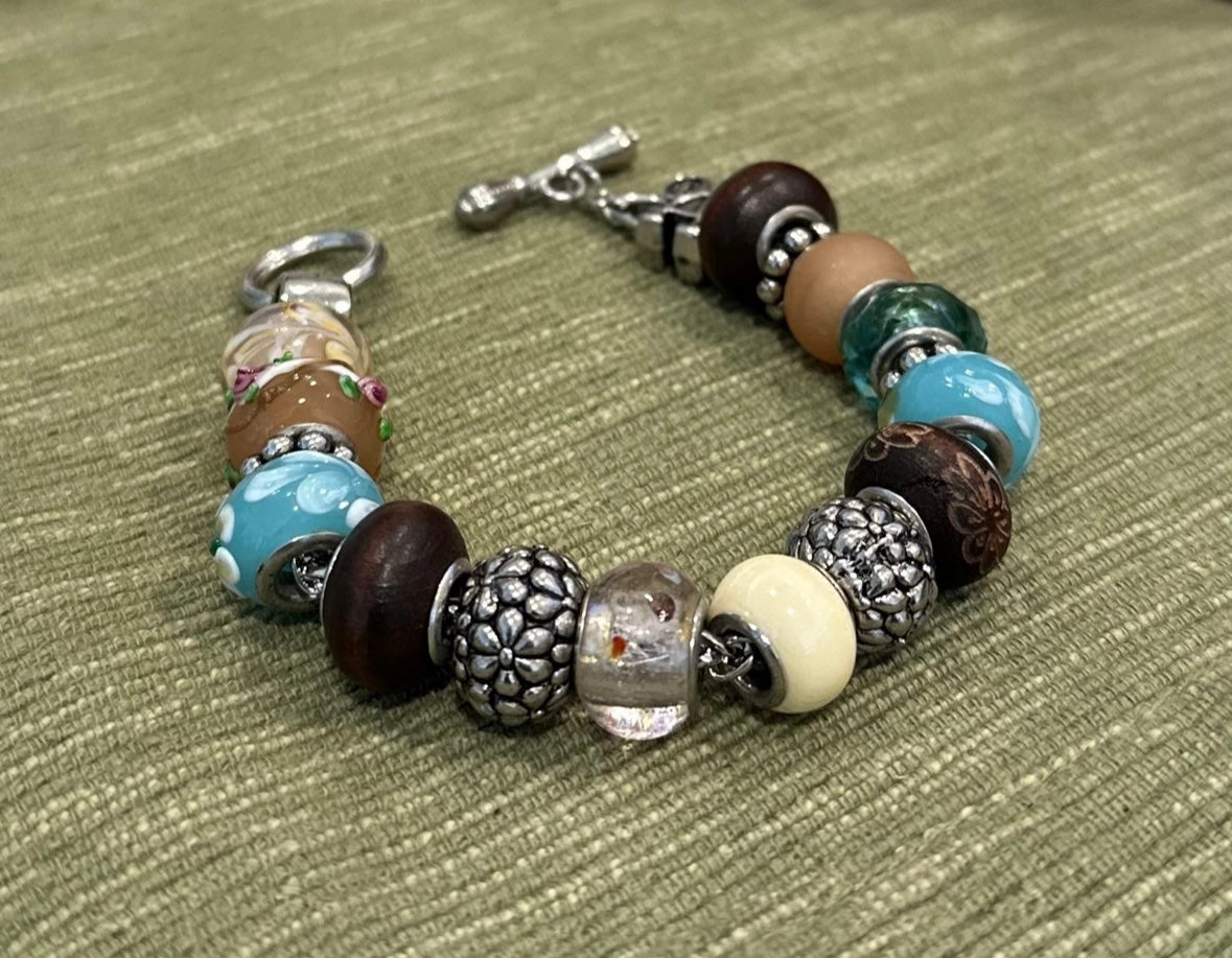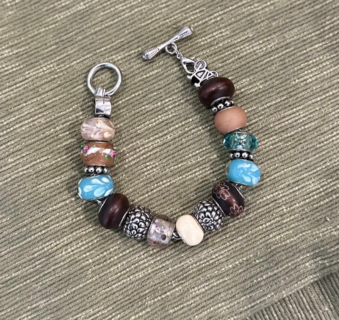 Handmade Glass and Wood Beaded 7 1/2 Inch Bracelet