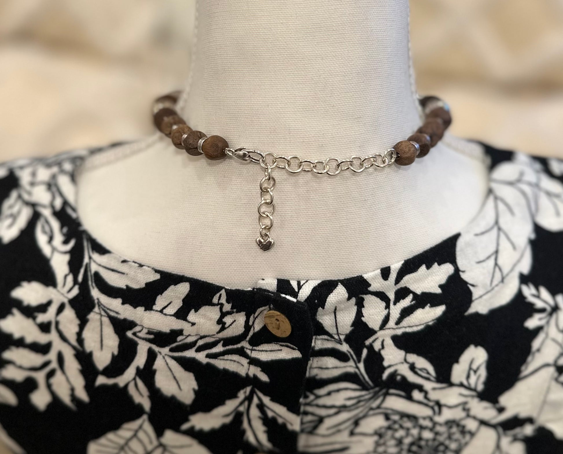 Brighton Silver tone Brown Wood Beads Chunky Statement 16” to 18” Inch Long Necklace.