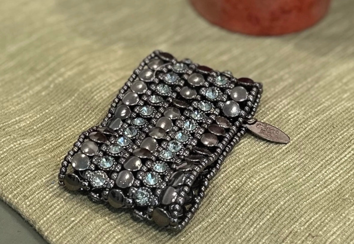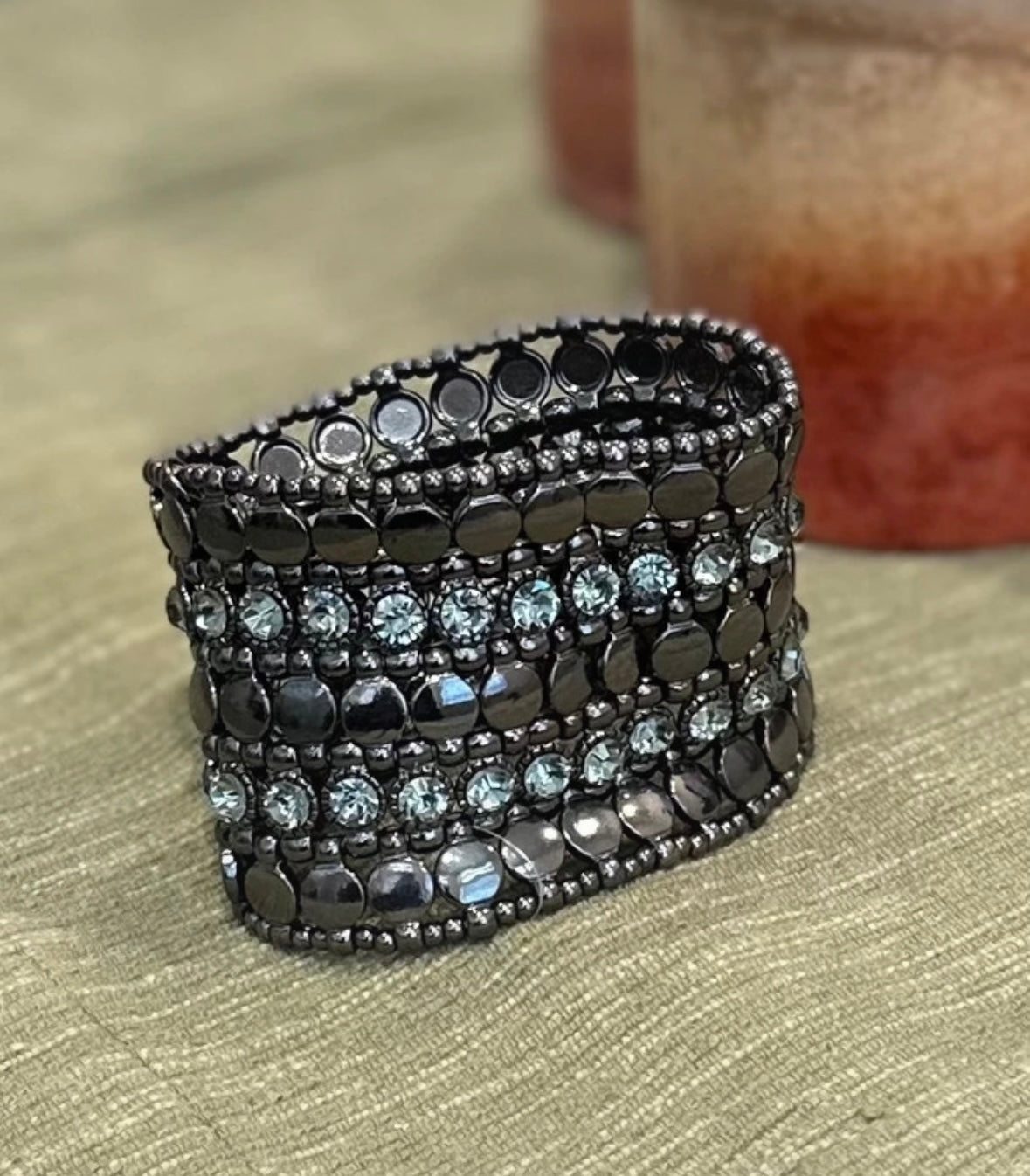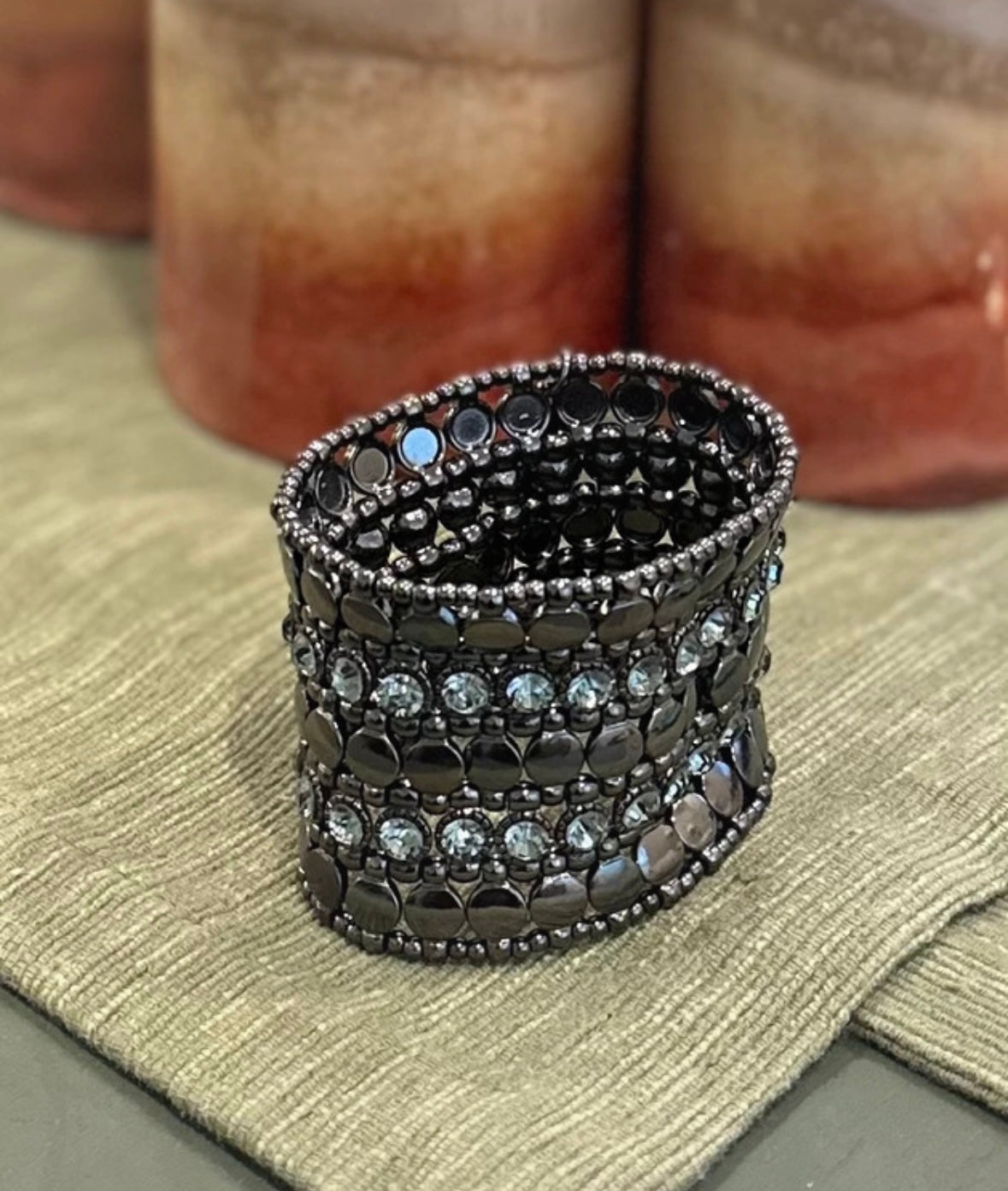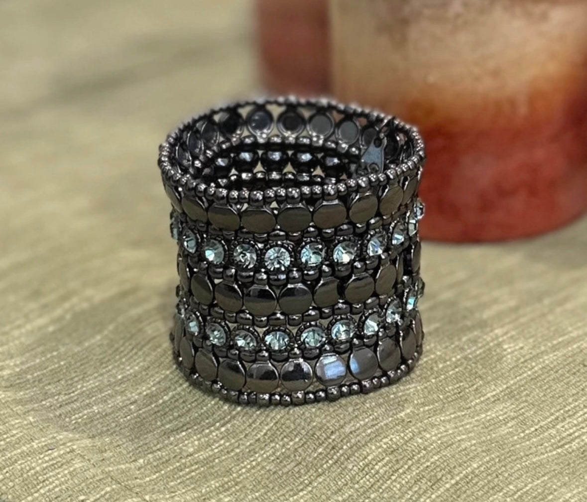 CARA N.Y. Gray Rhinestone Oxidized Stretch Bracelet 6"1/2 Long and Width 2"