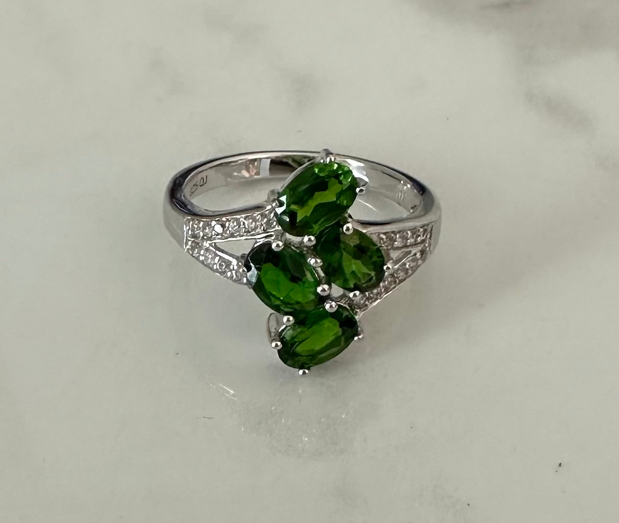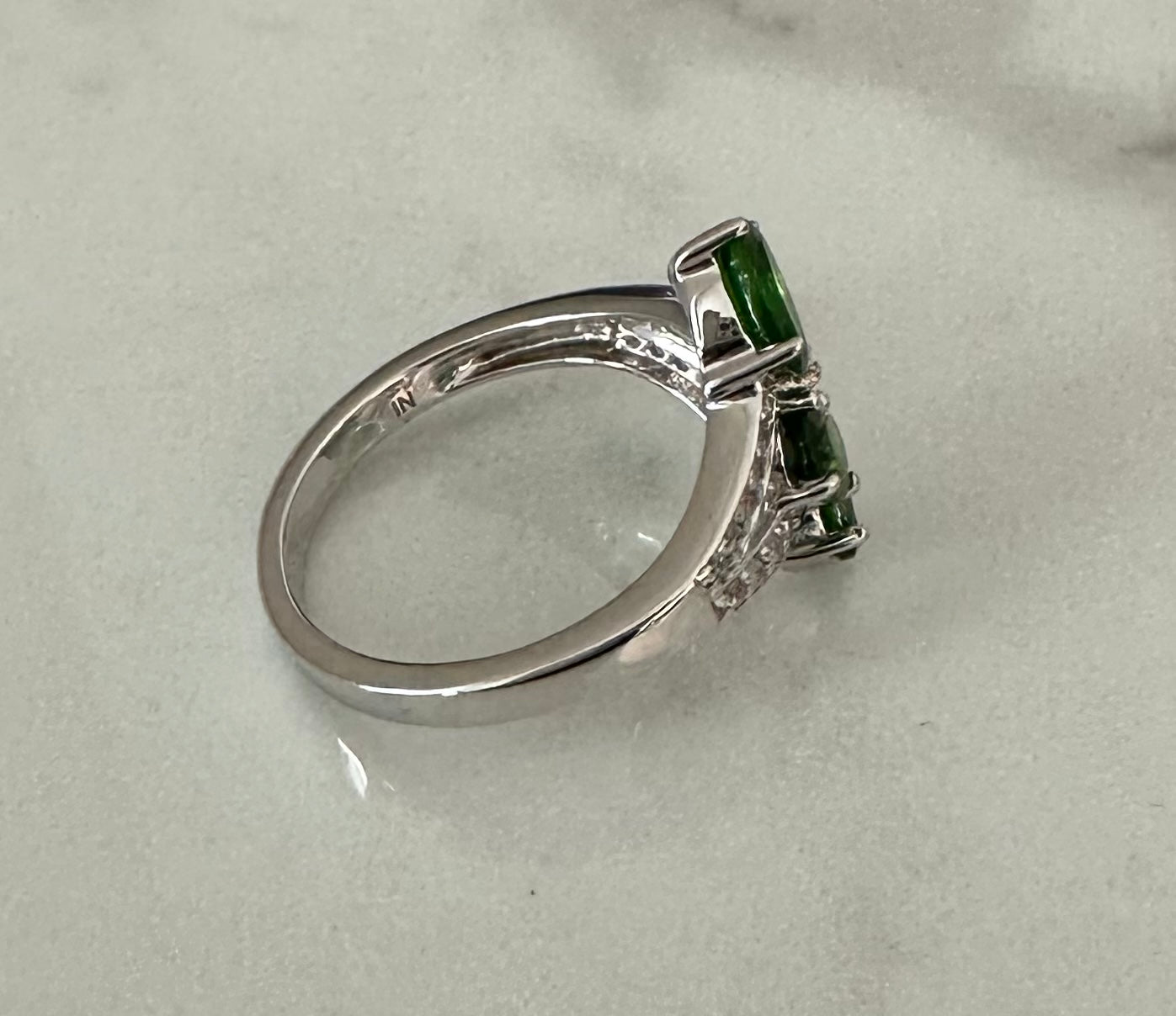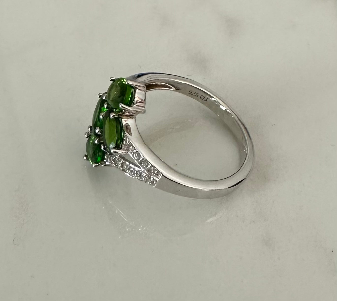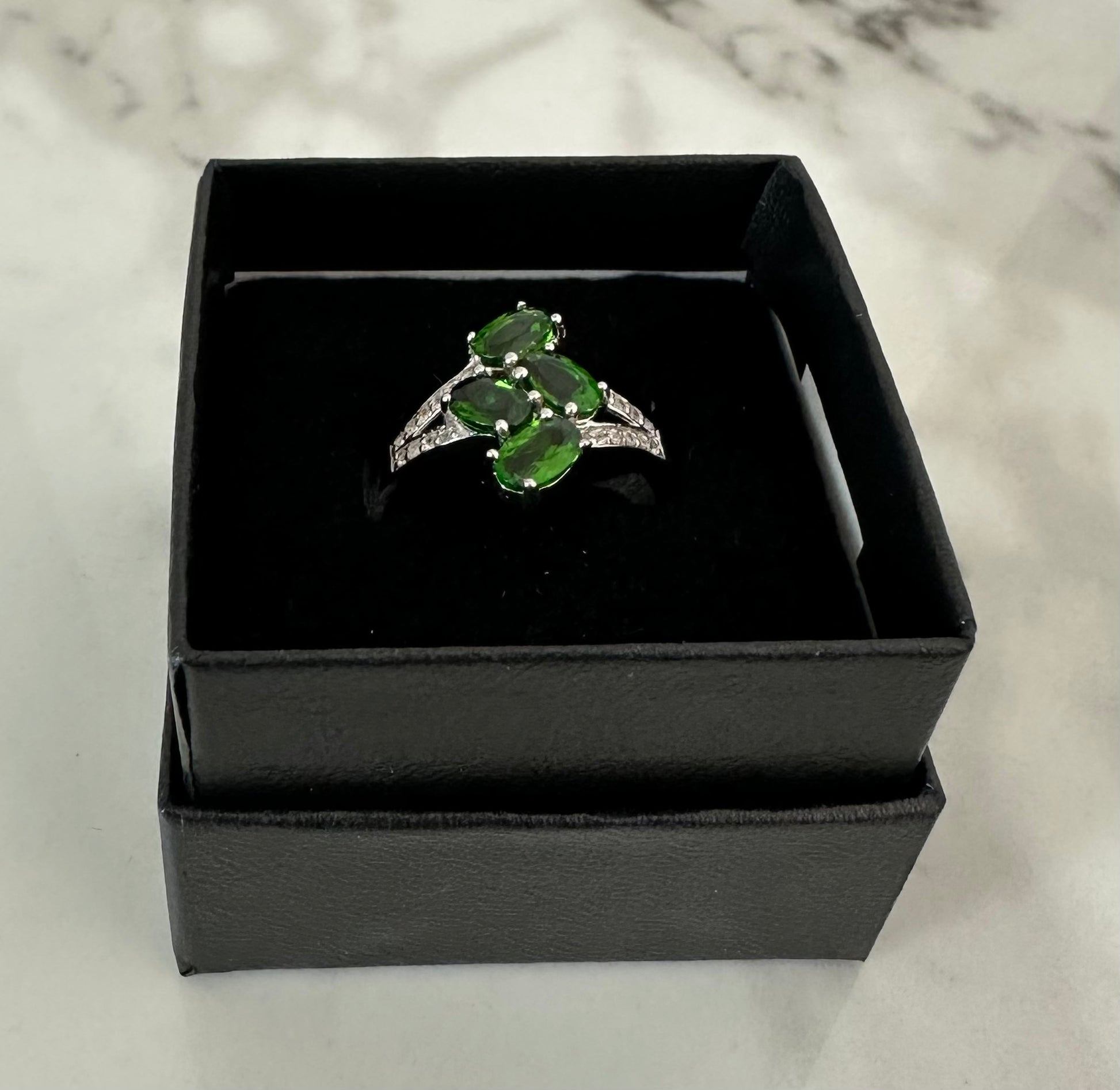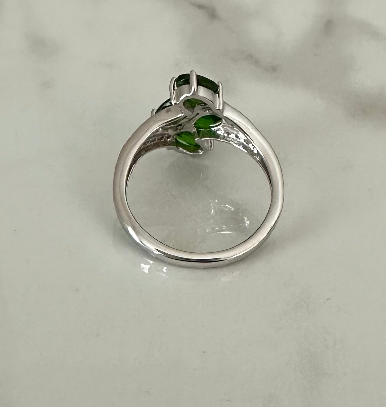 Womens White Gold Rhodium Over Sterling Silver Chrome Diopside and Zircon Size 7 Designer Ring