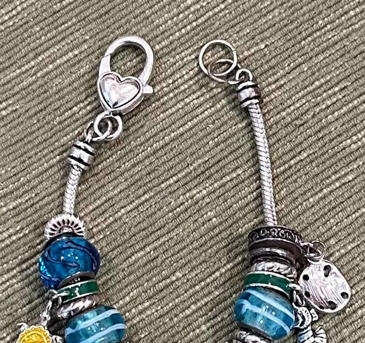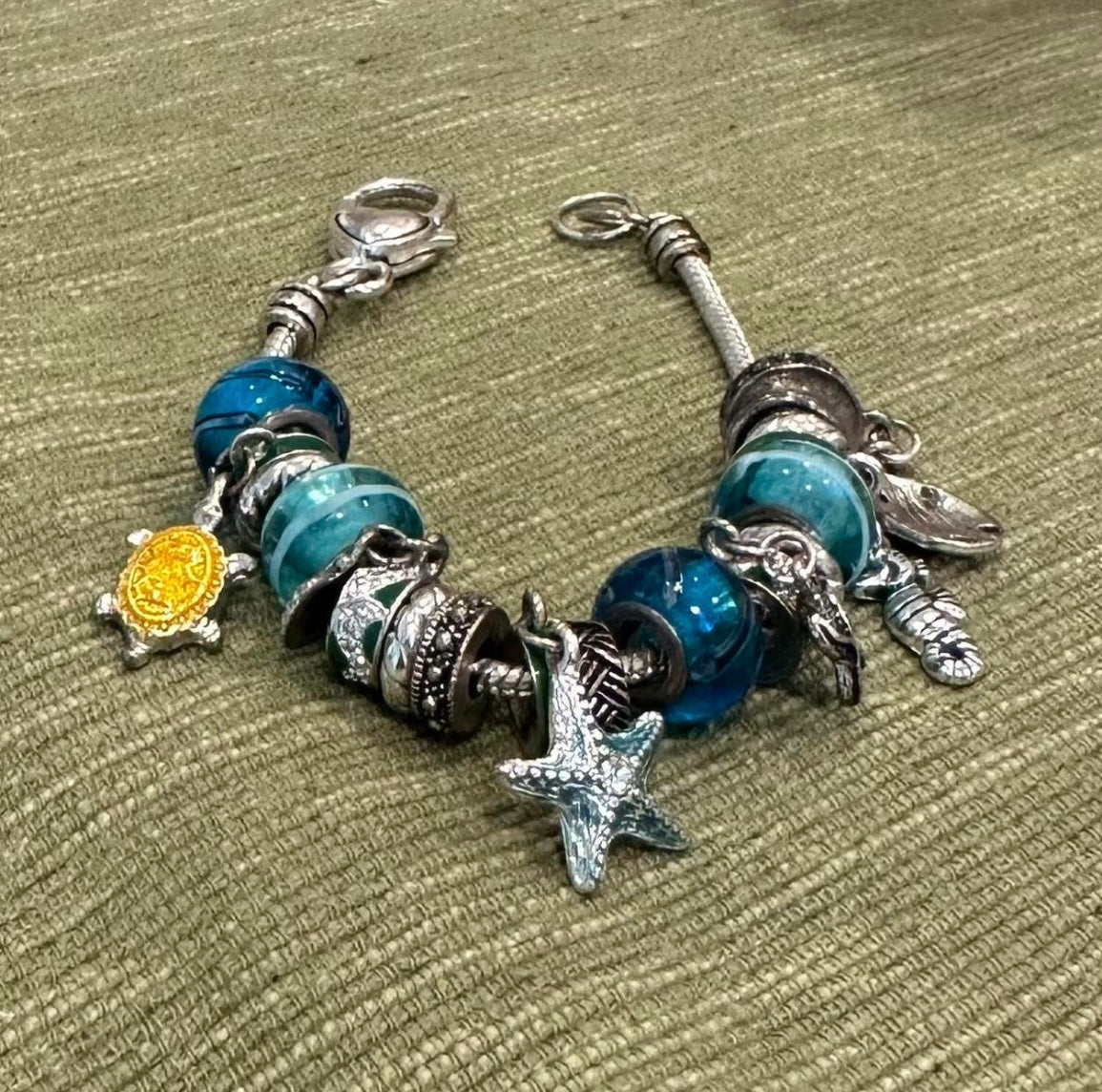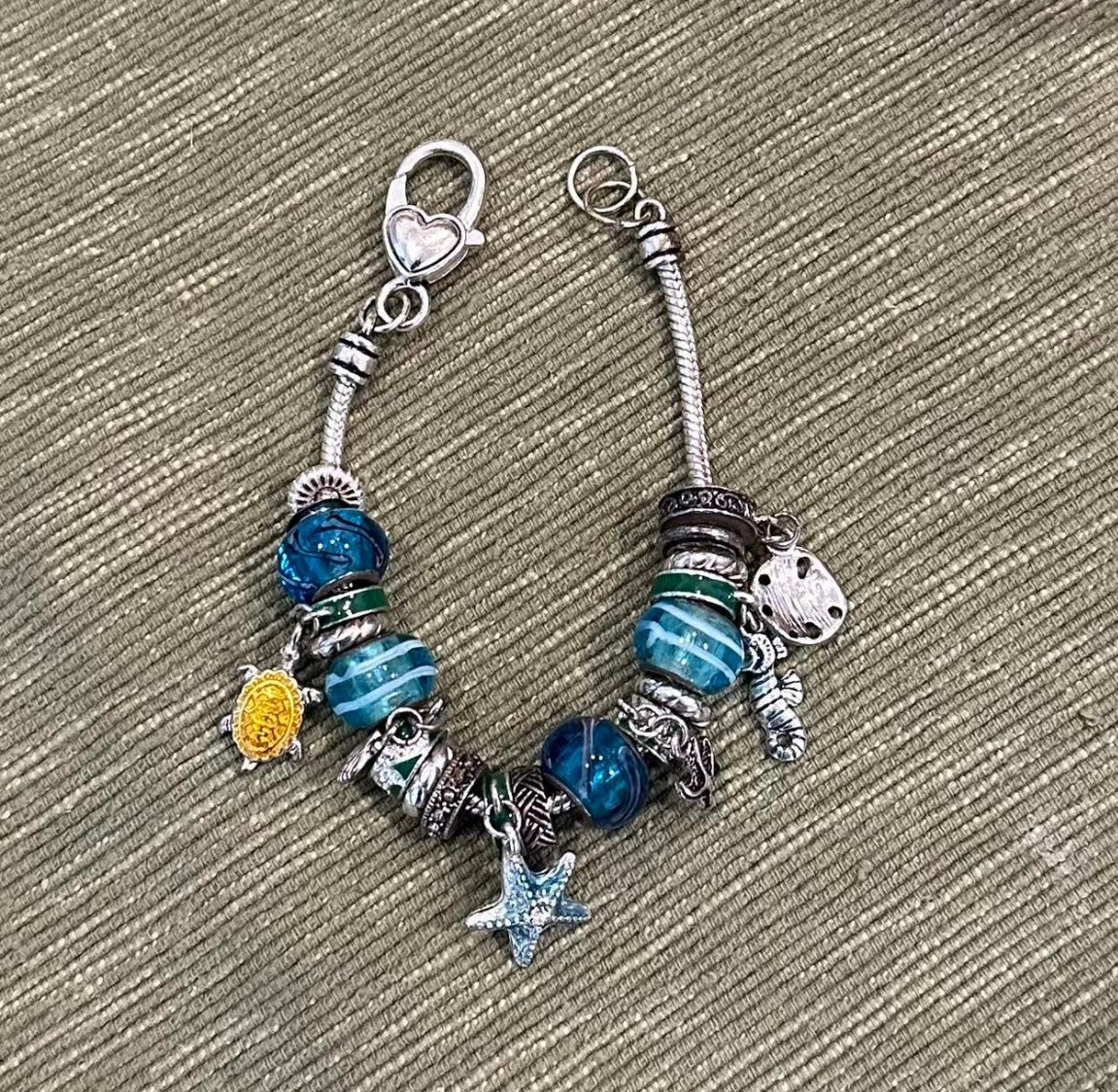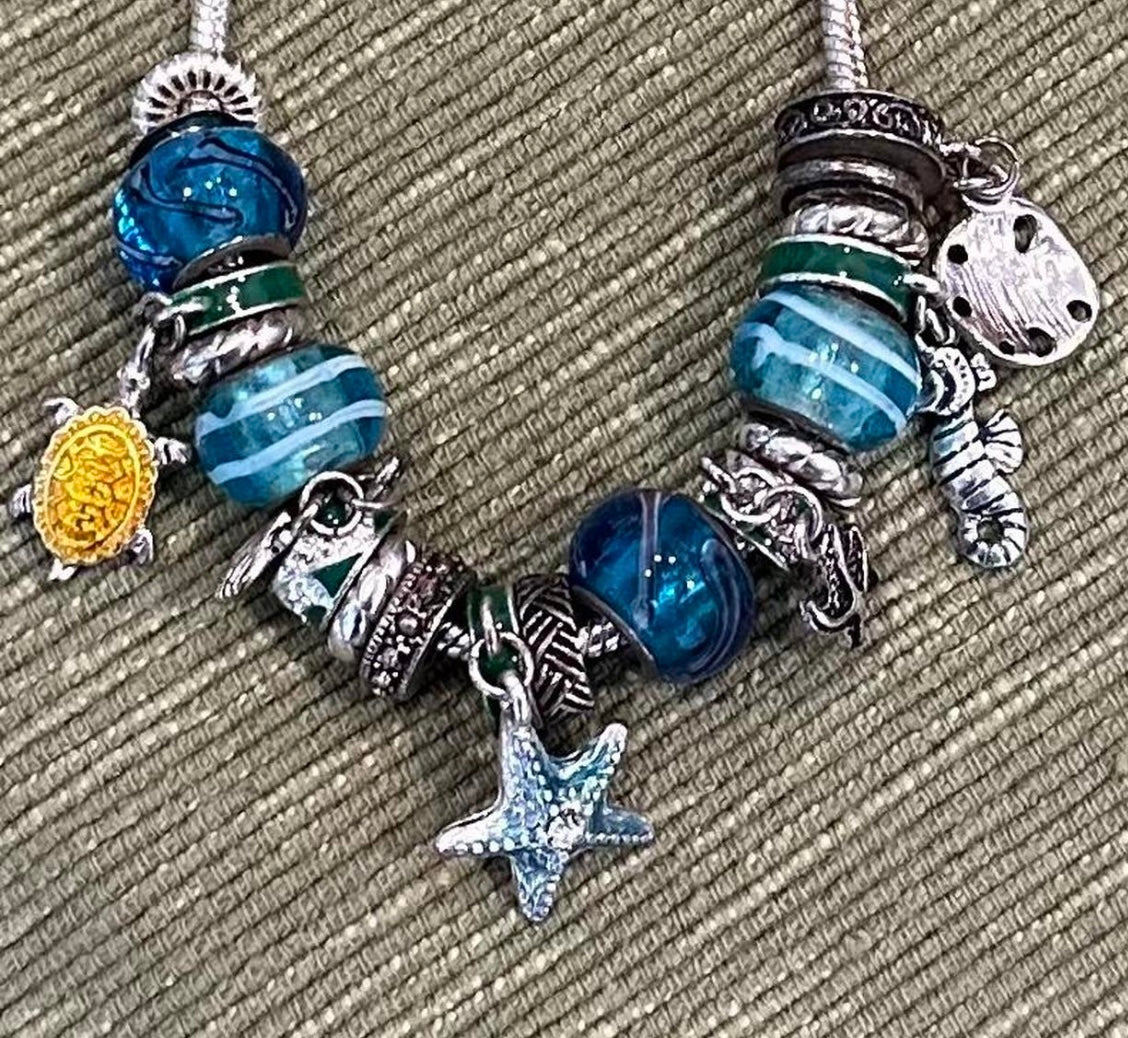 Ocean Charms Sea Starfish Shell Seahorse Sand 8" Inch Long Bracelet