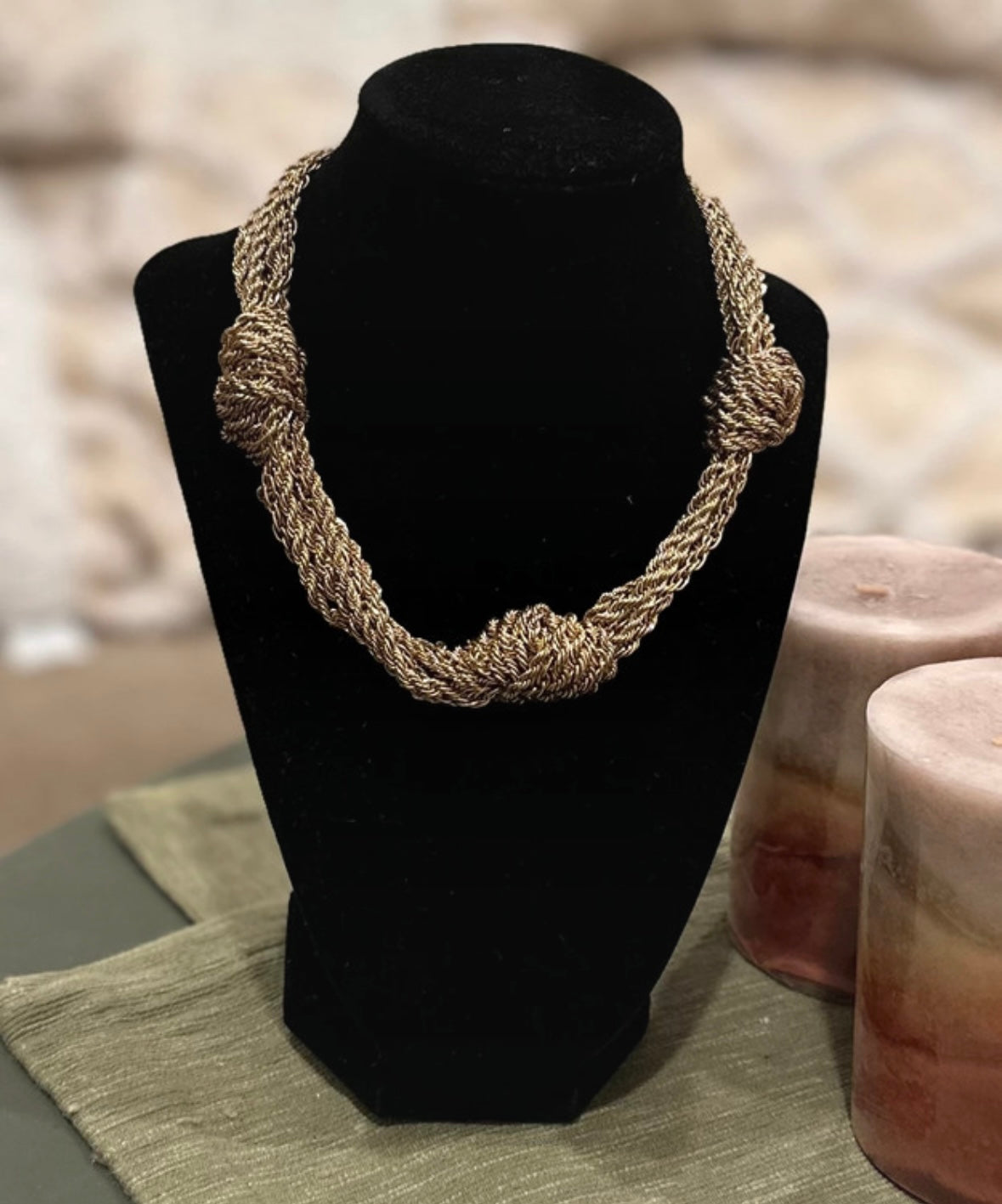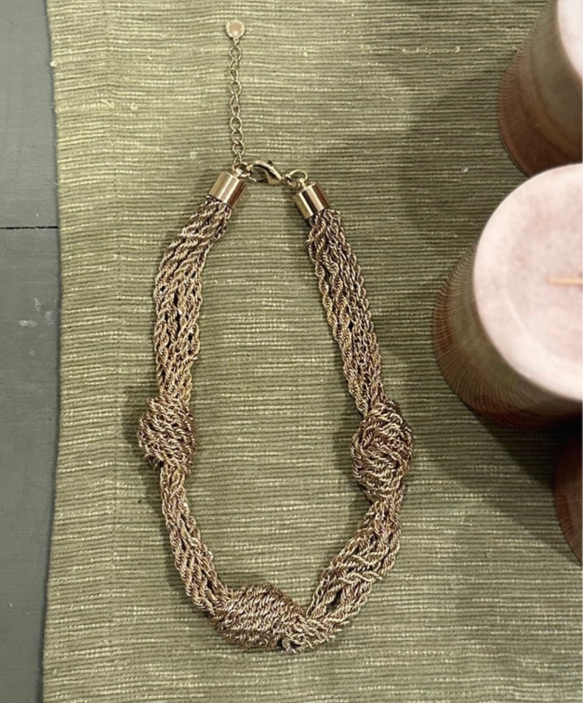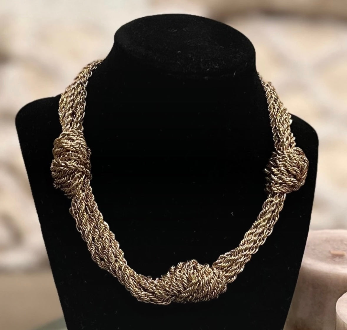 Vintage Charter Club 3 Knot Necklace Chunky Multi Strand Gold Tone Chain Statement About 19-21" Inches Long.