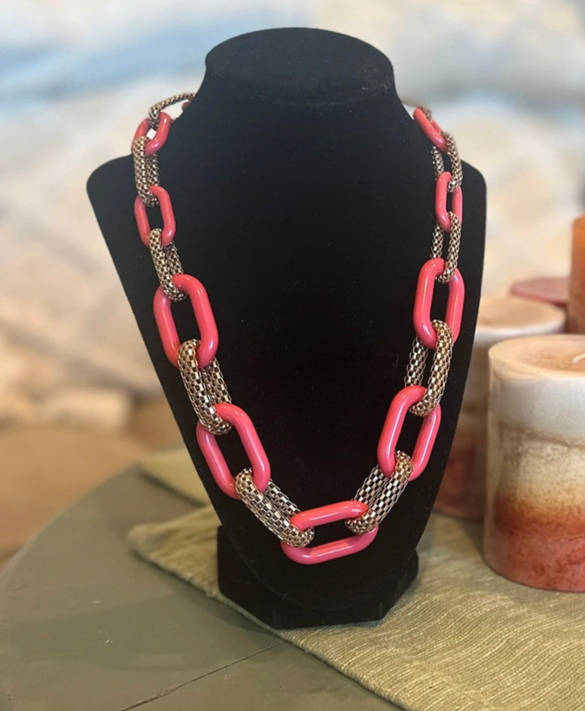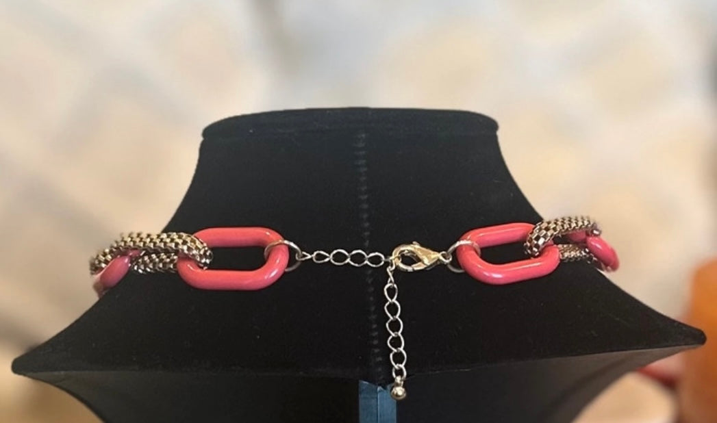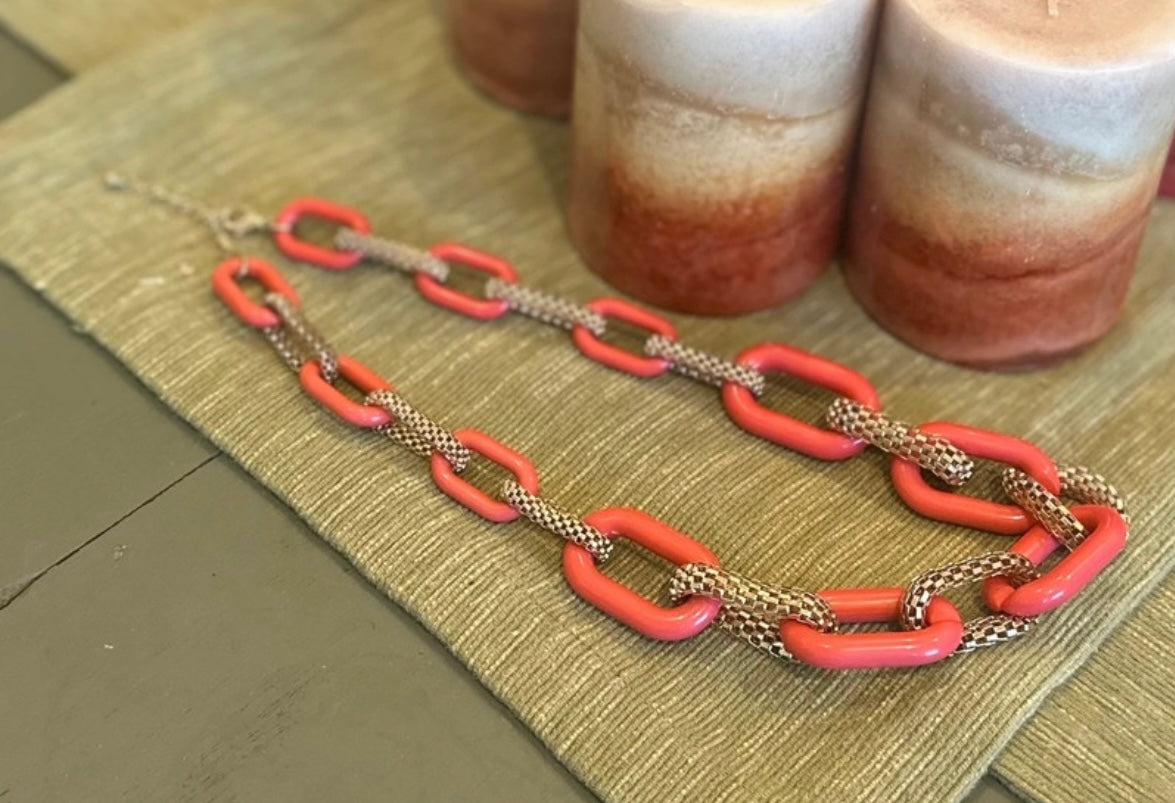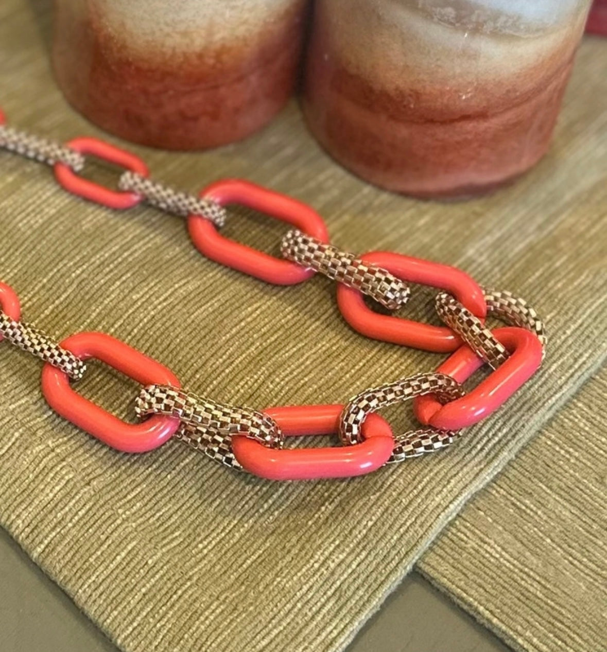 Vintage Chunky Salmon/Coral Gold Tone Large Chain Link Statement Necklace About 20"inches long