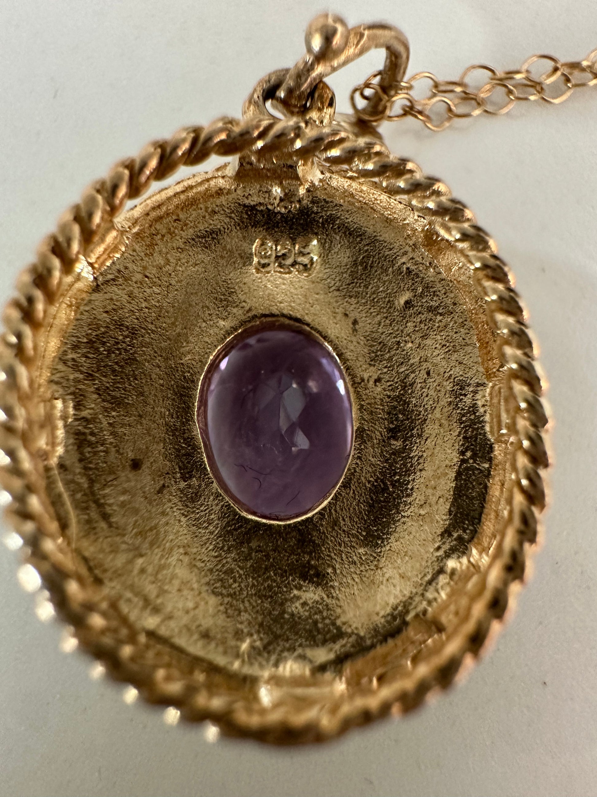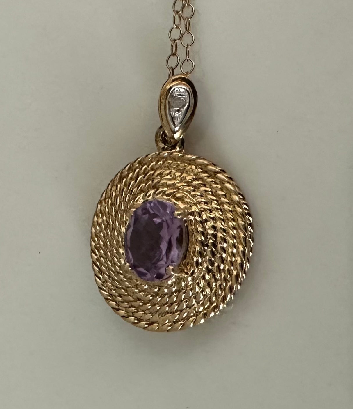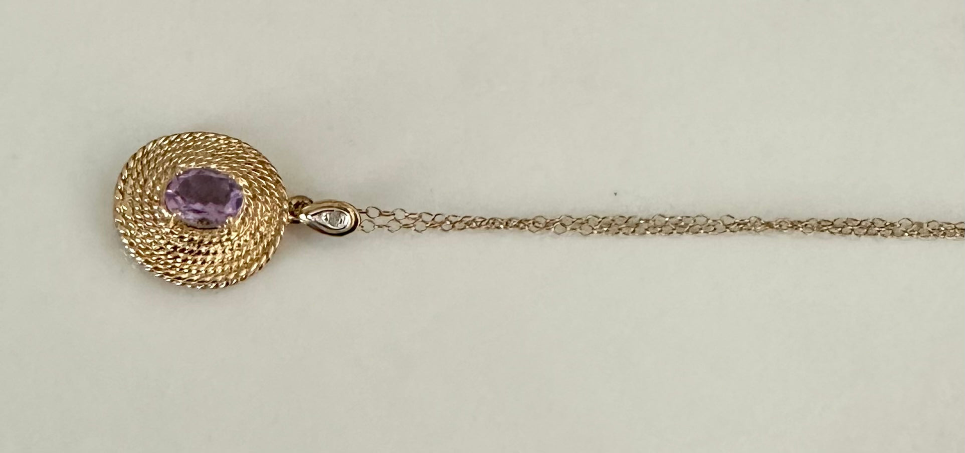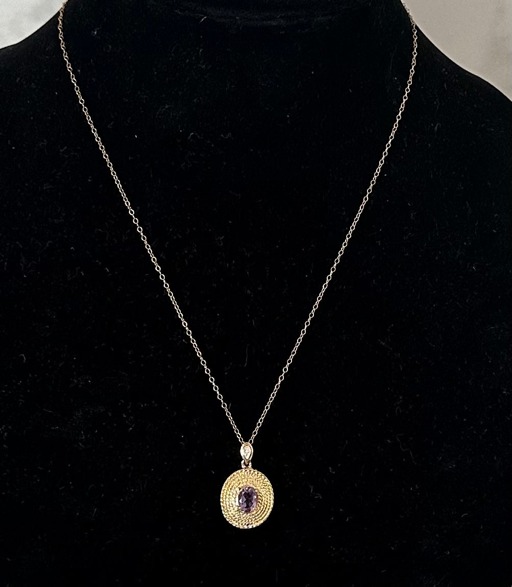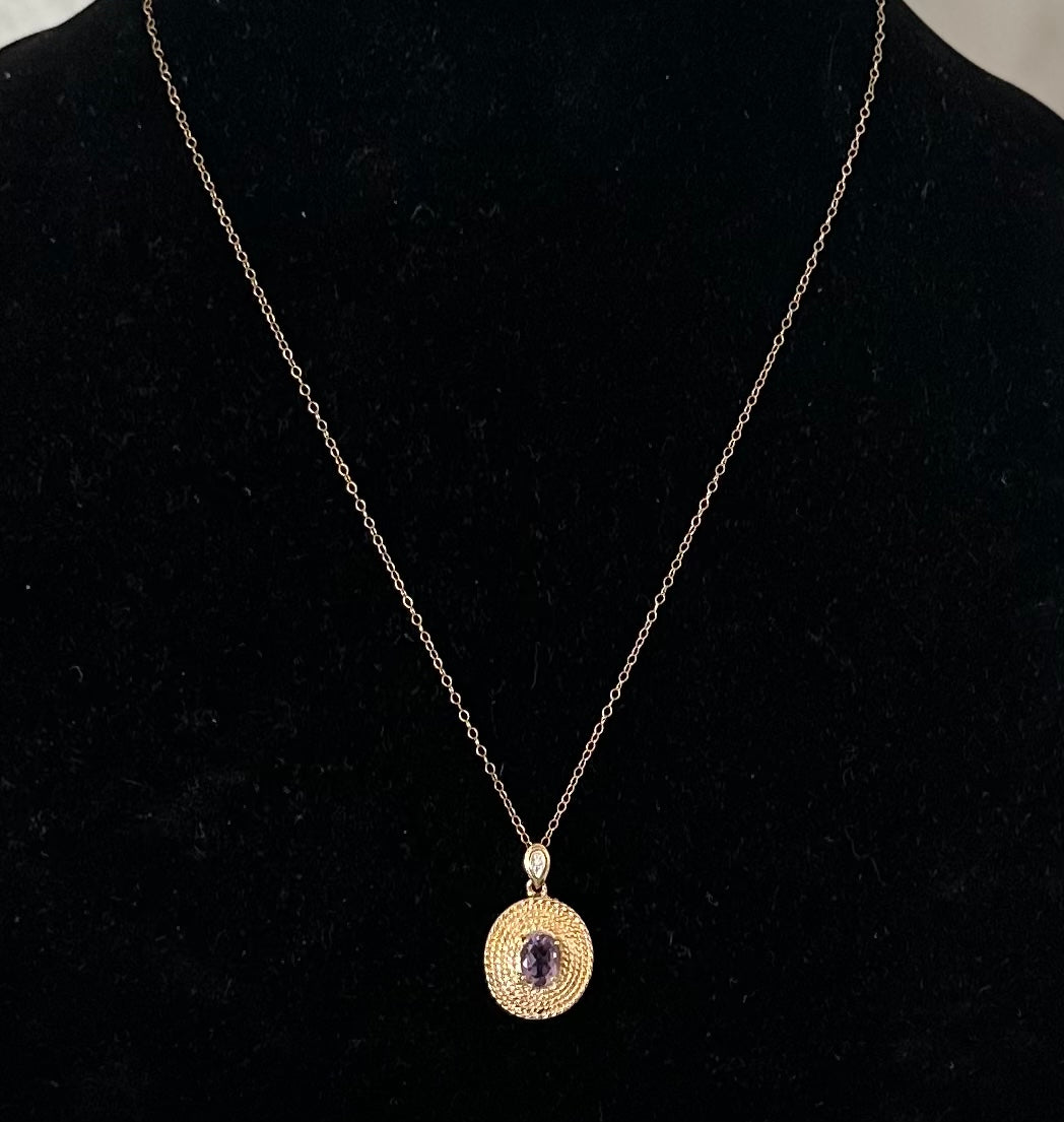 Womens 18K Yellow Gold Over Solid Sterling Silver 1.0 CTW Amethyst 18 Inch Diamond Necklace.