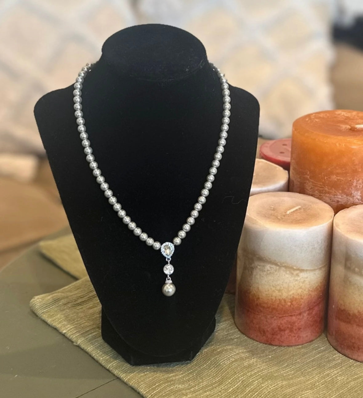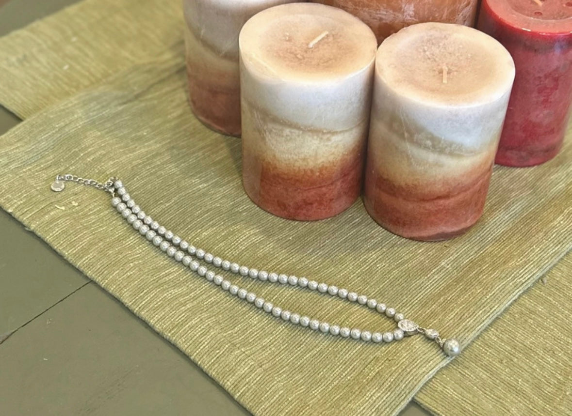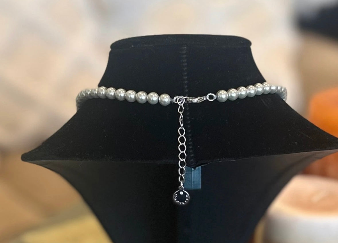 Grey Faux Pearl Rhinestone Necklace