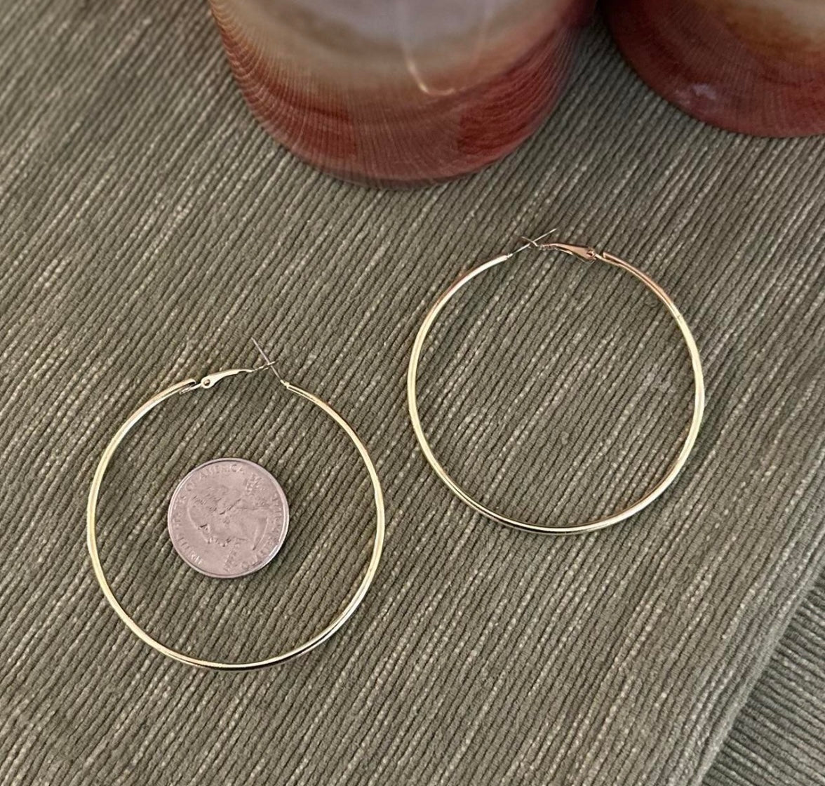 6cm Gold Tone Stainless Steel Hoop Earrings