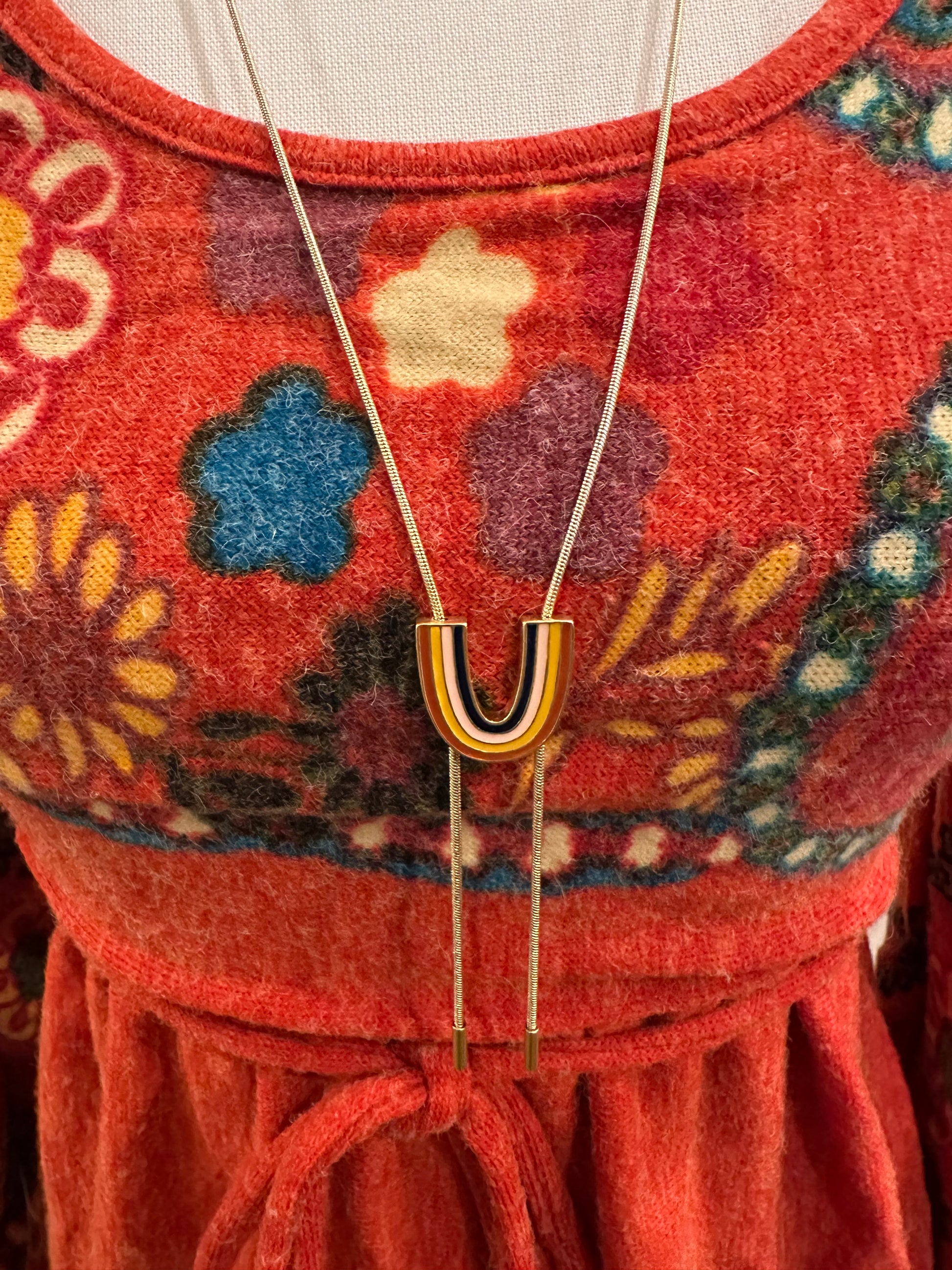 Signed Madewell Enamel Rainbow Gold Plated 34” Inch Long Adjustable Necklace