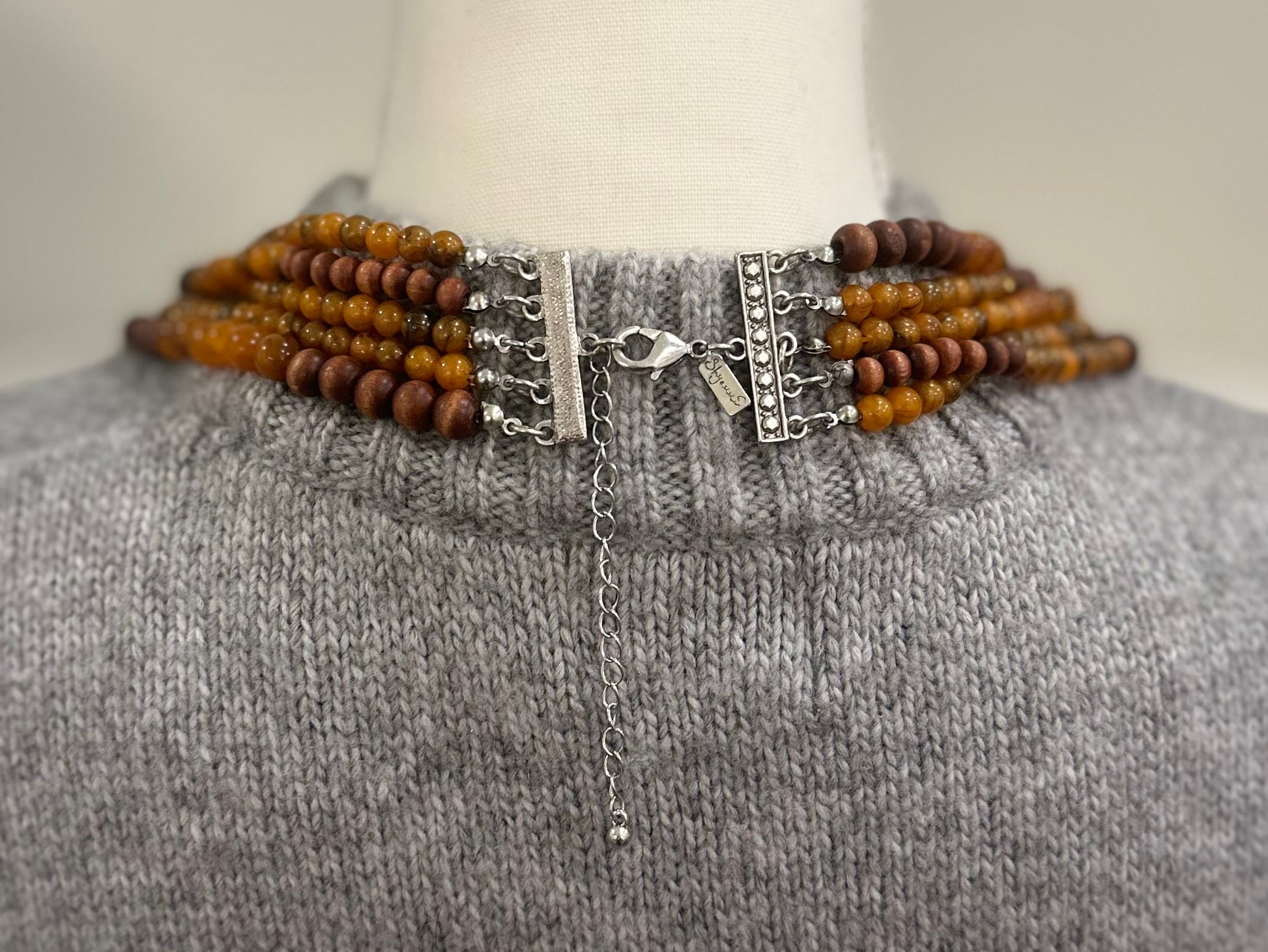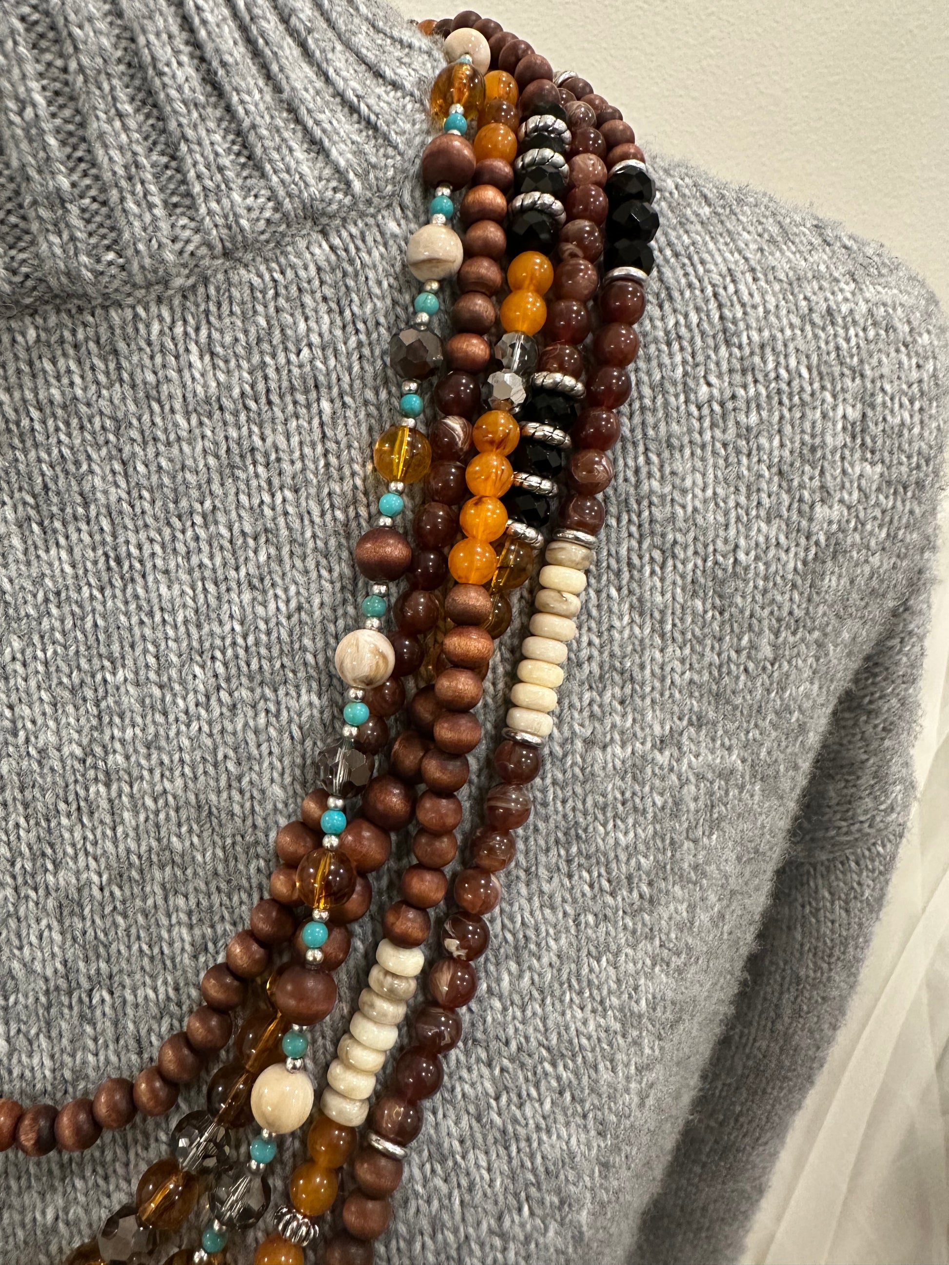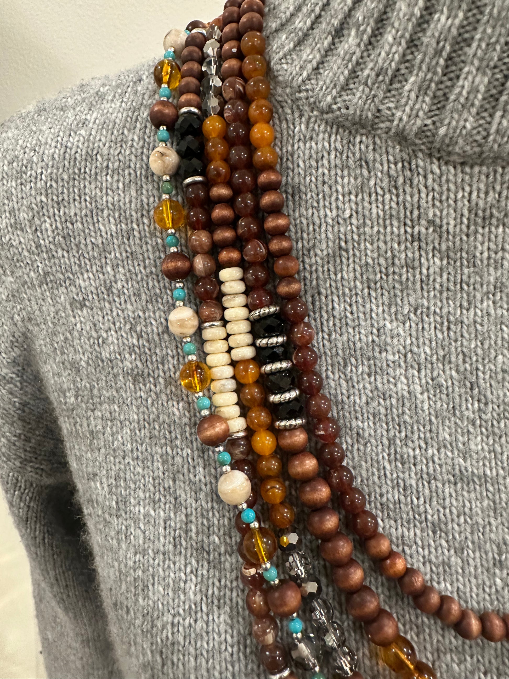 Navajo Style Shyanne Silver Tone Multi stand and Multi Color 26” Inch Statement Necklace With Wood and Glass Beads.