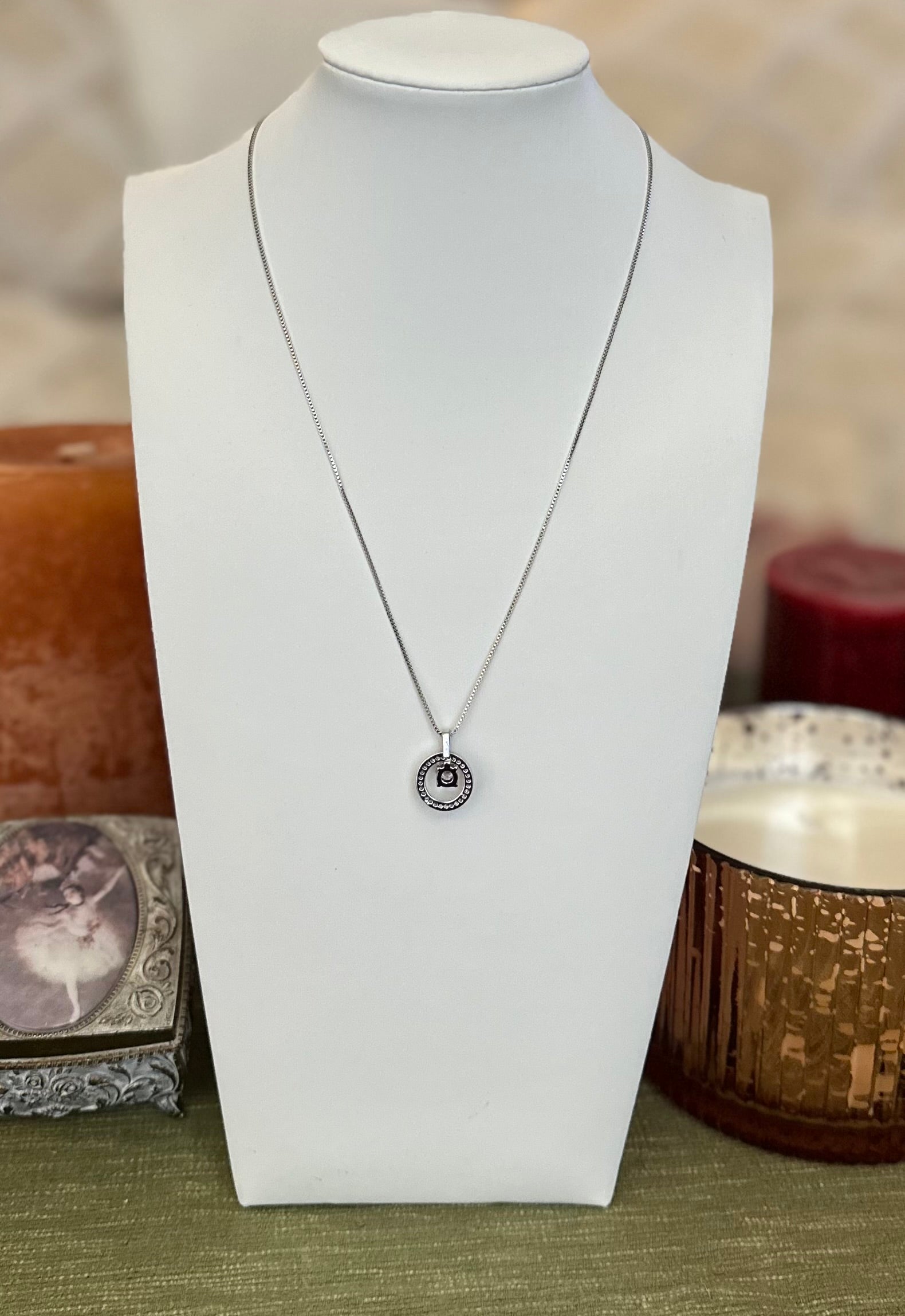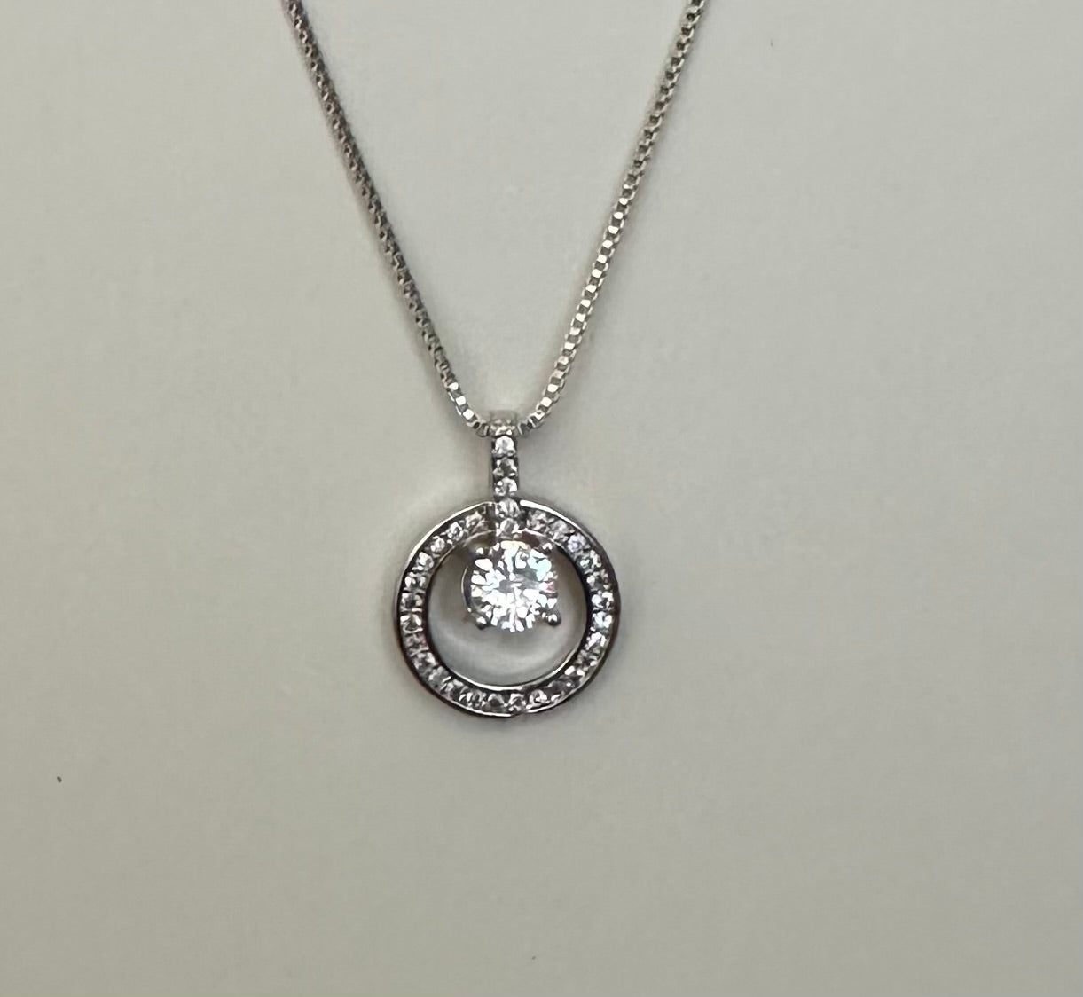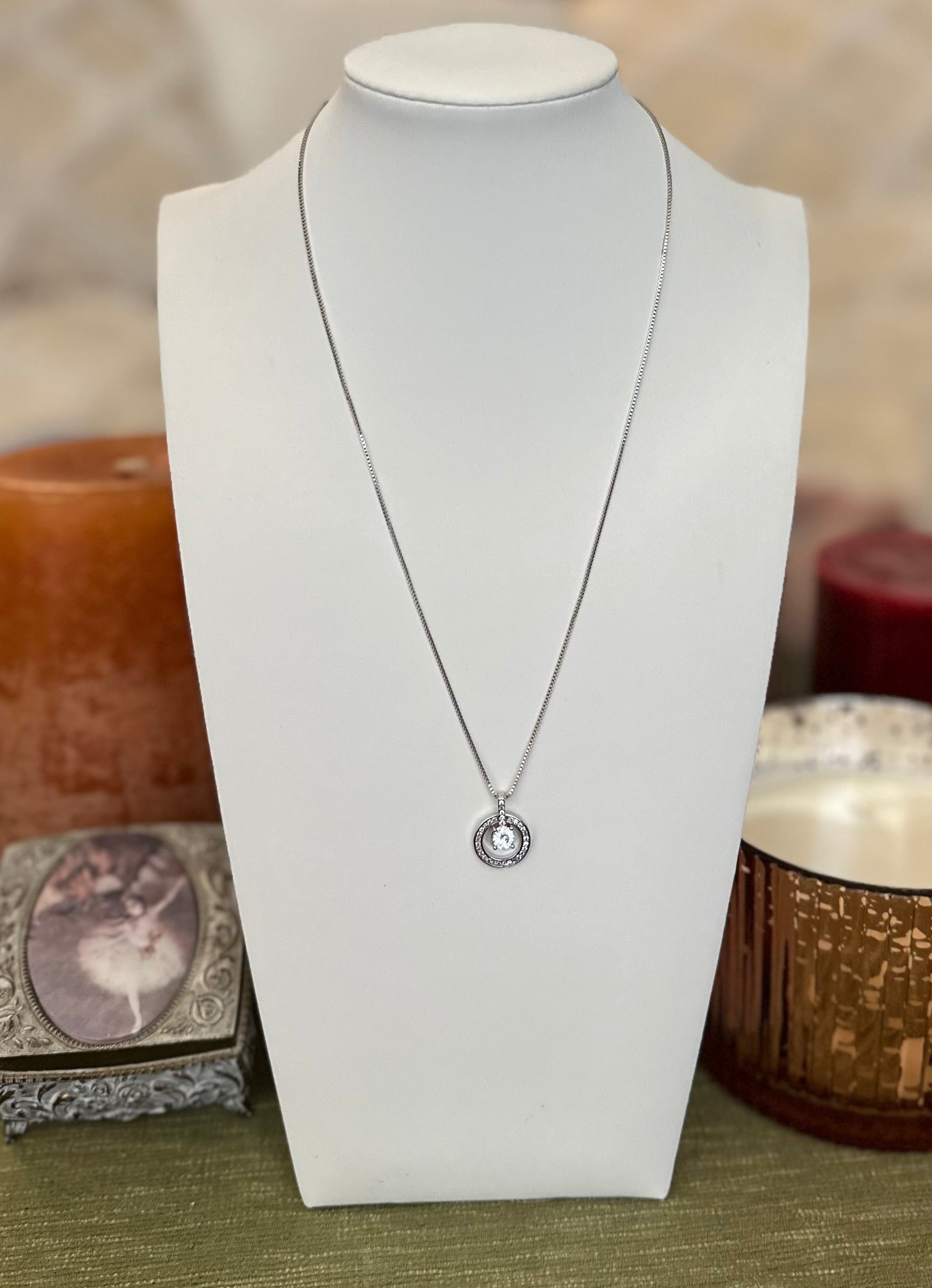 Silver Tone Halo Ring Pendant Necklace