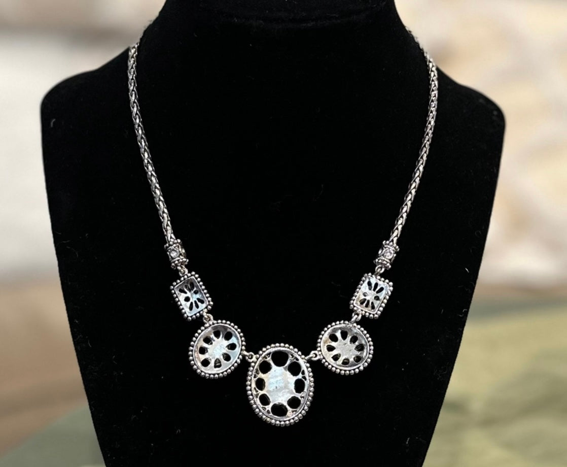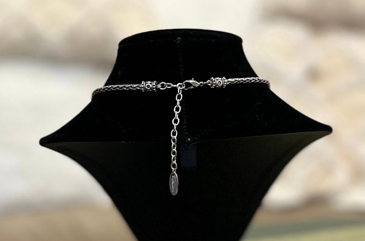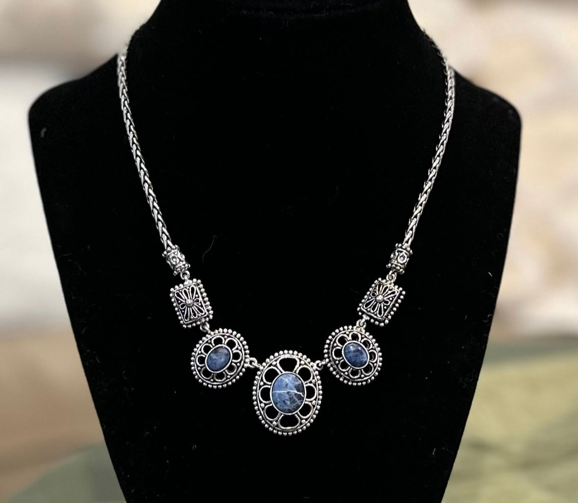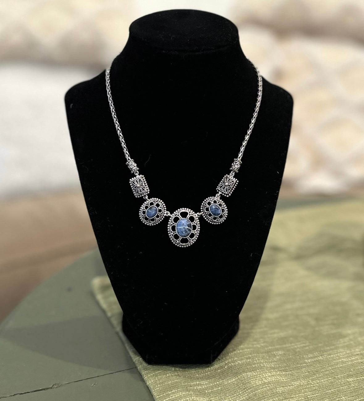 Talbots Silver and Blue Veined Stone 15” Choker Necklace With A 3” Extension Signed Talbots