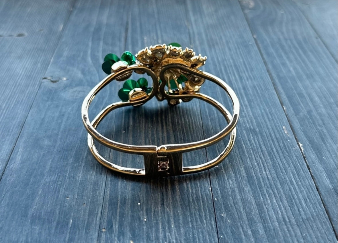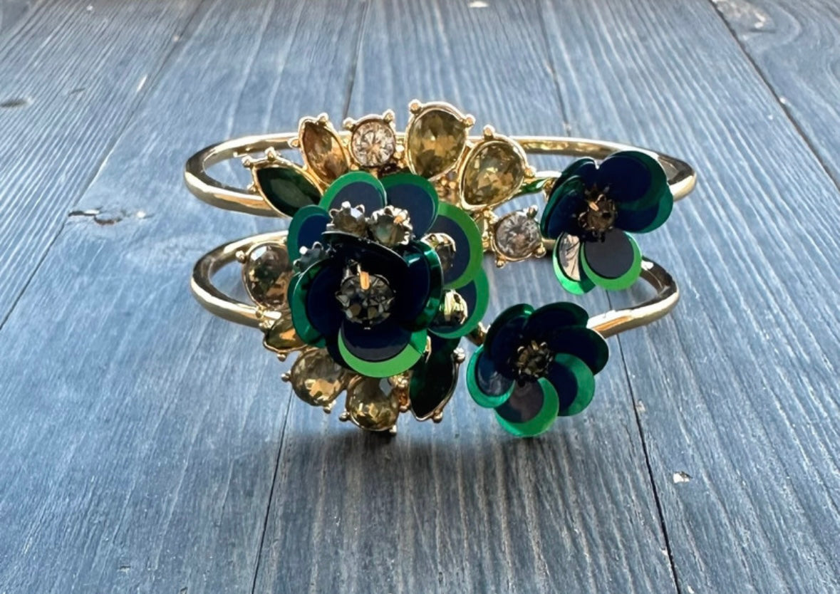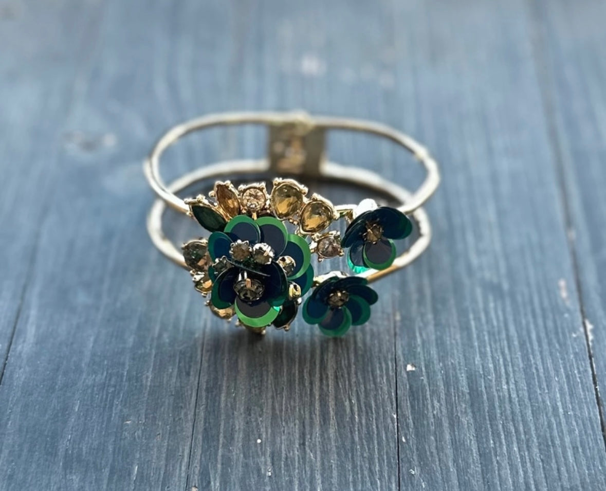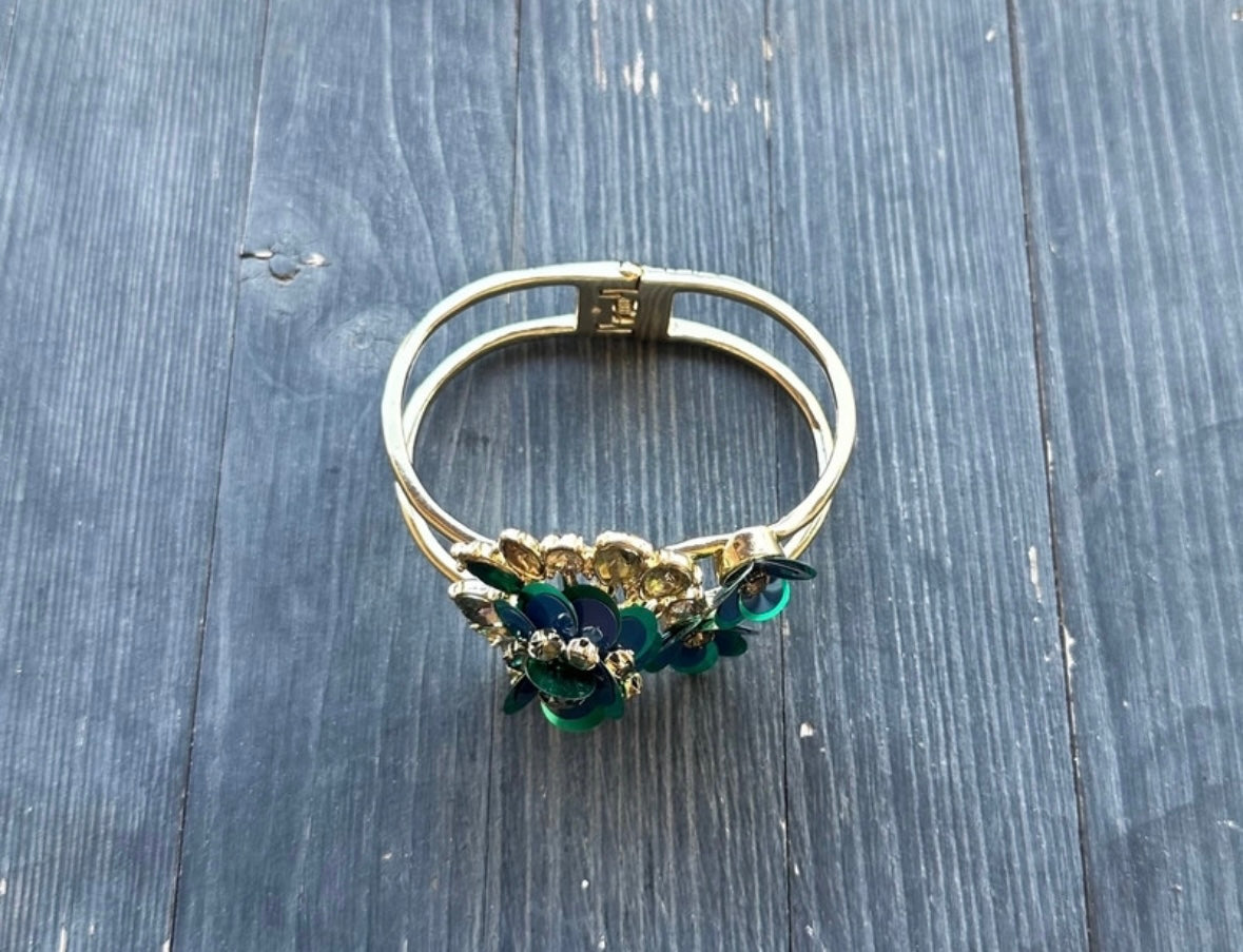 Talbots Enameld Green , Crystal & Sequin Flower Hinged Bracelet