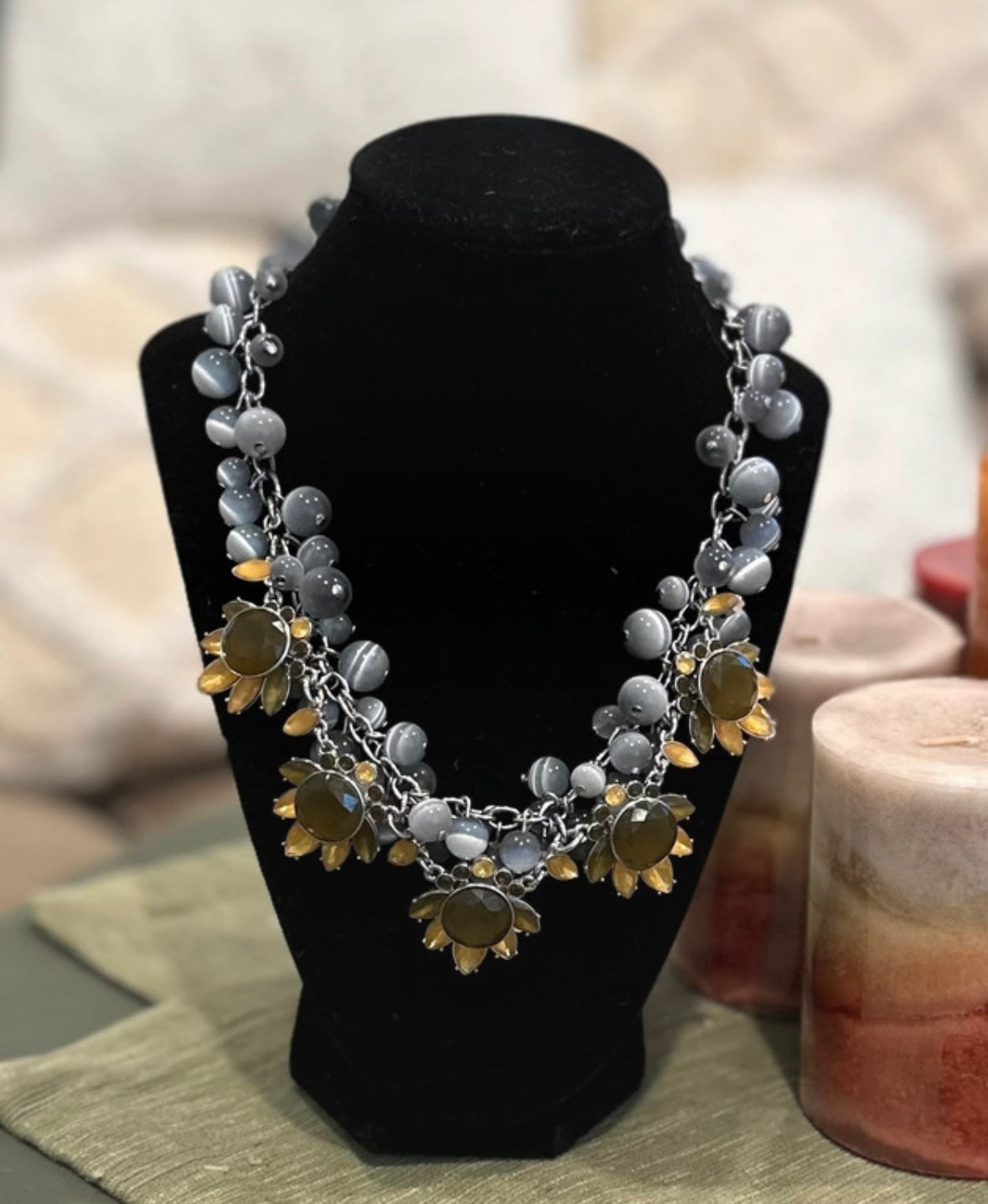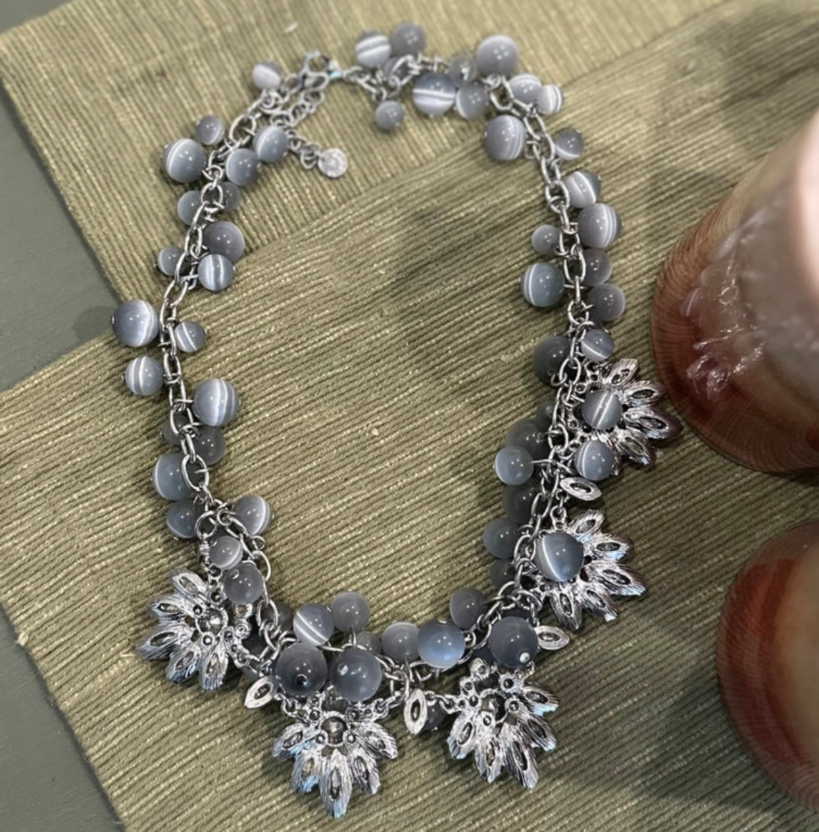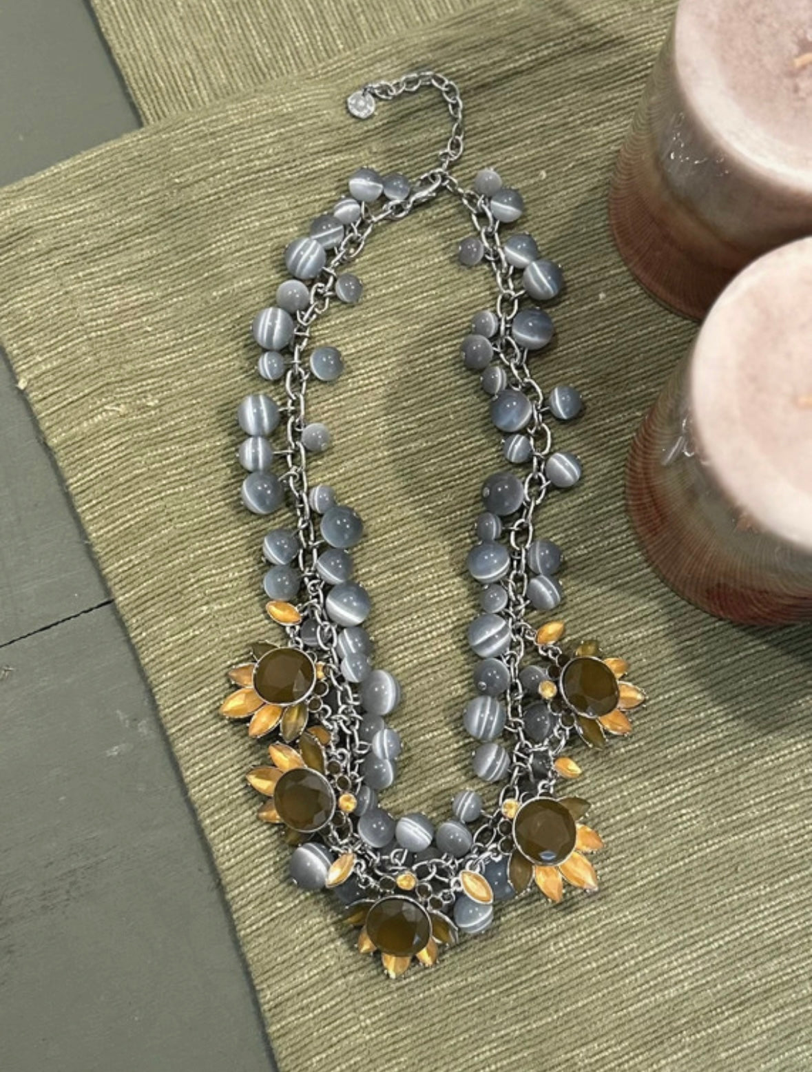 TALBOT'S Multi Strand Cat eye & Crystal Flower Statement 18" inch long Necklace