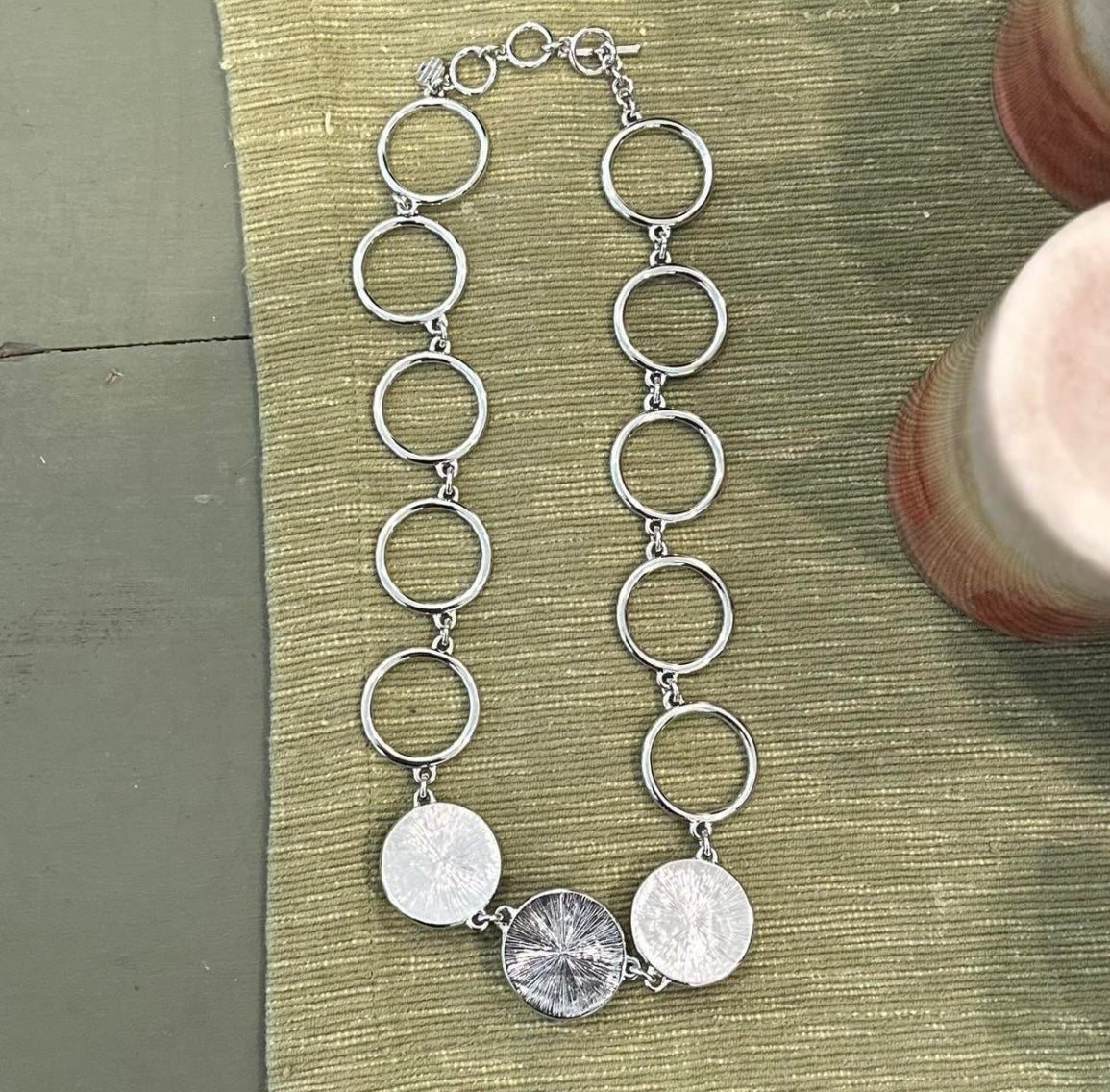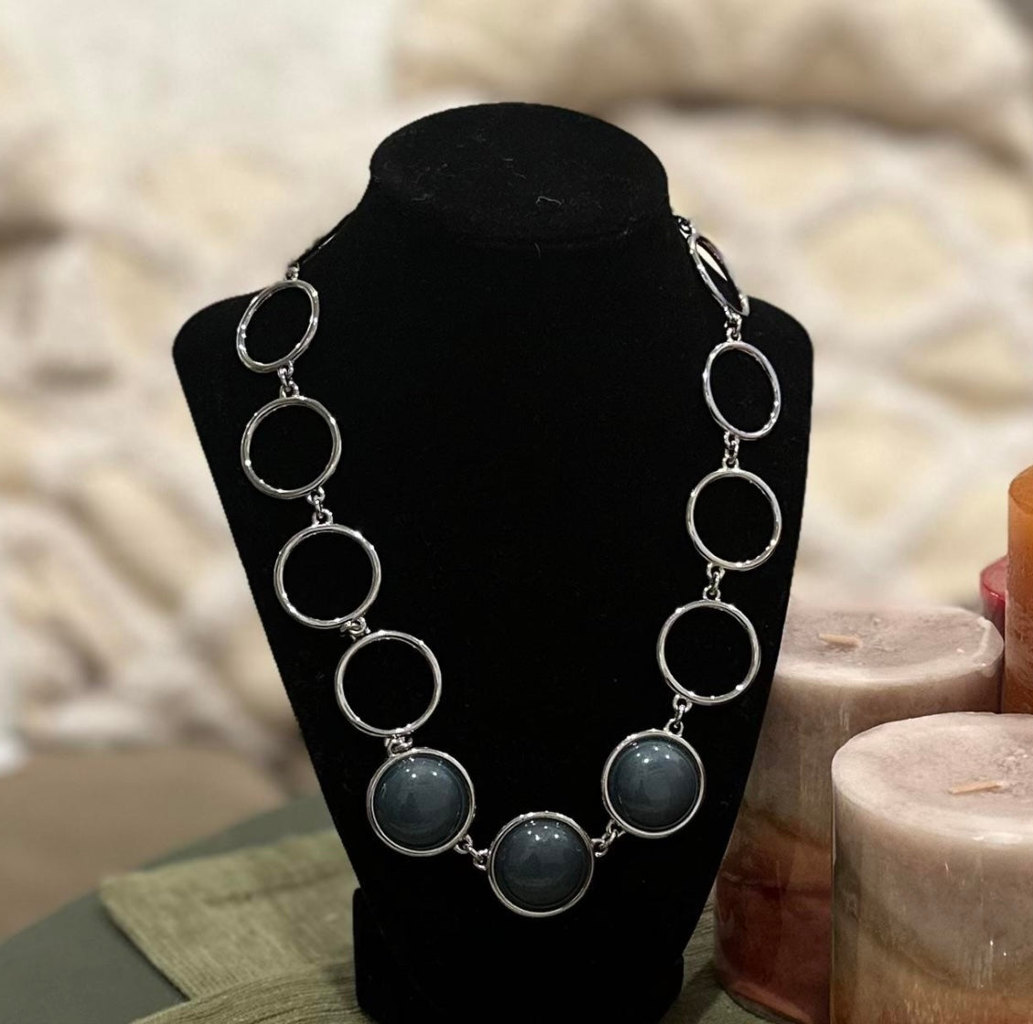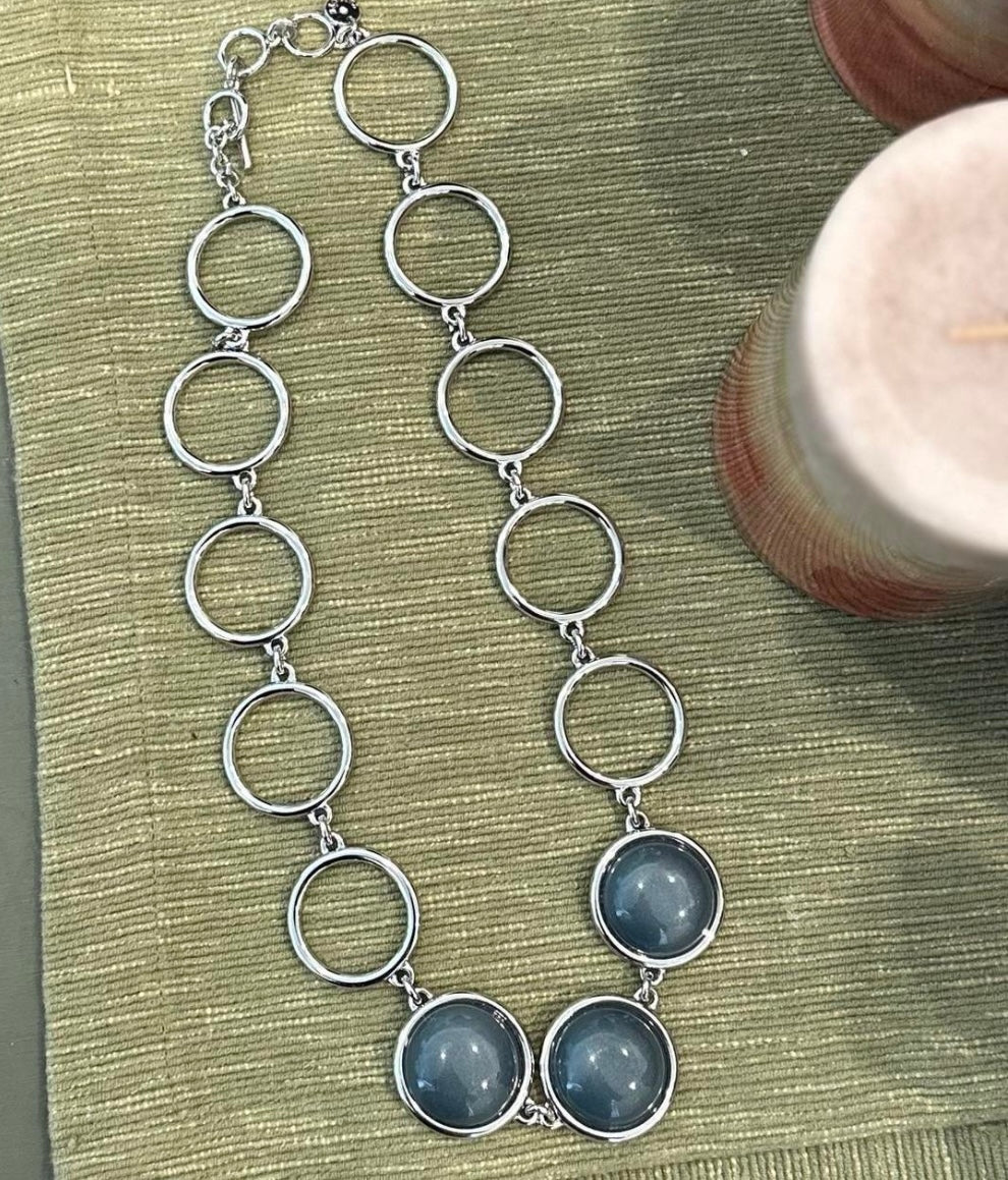 Talbots Silver Rings Blue Gray Stones Statement Necklace 20" inches long