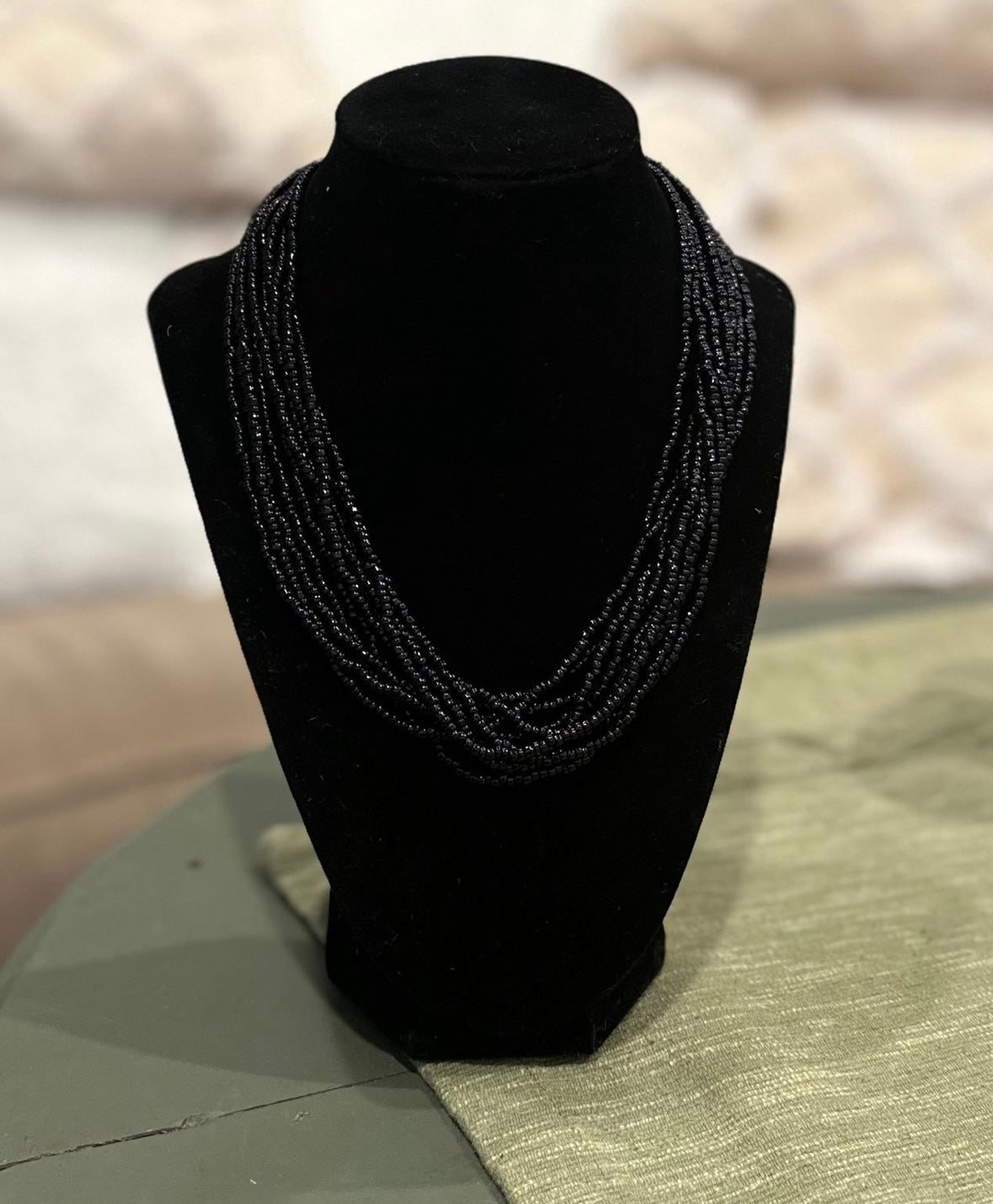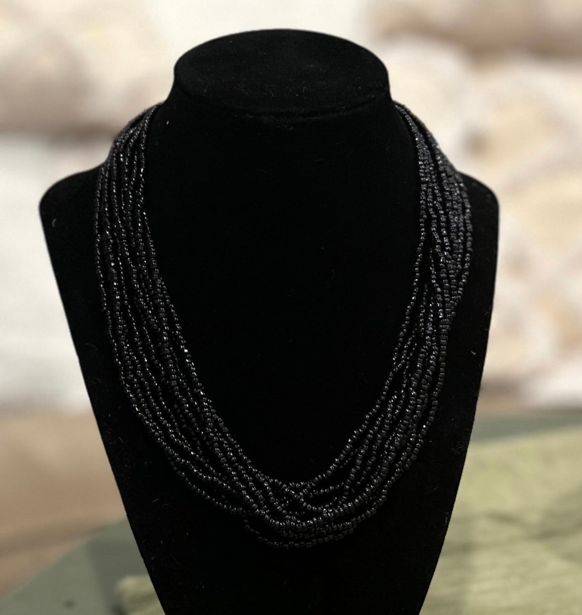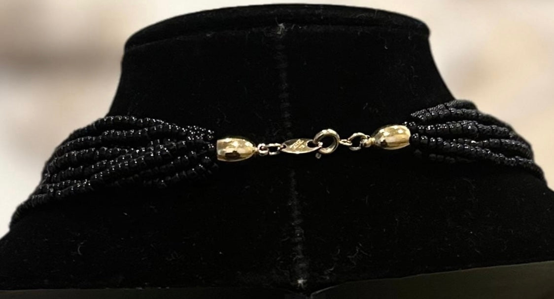Vintage Trifari Black Seed Bead Multi Strand 17.5 “ Inch Necklace Gold Tone Clasp