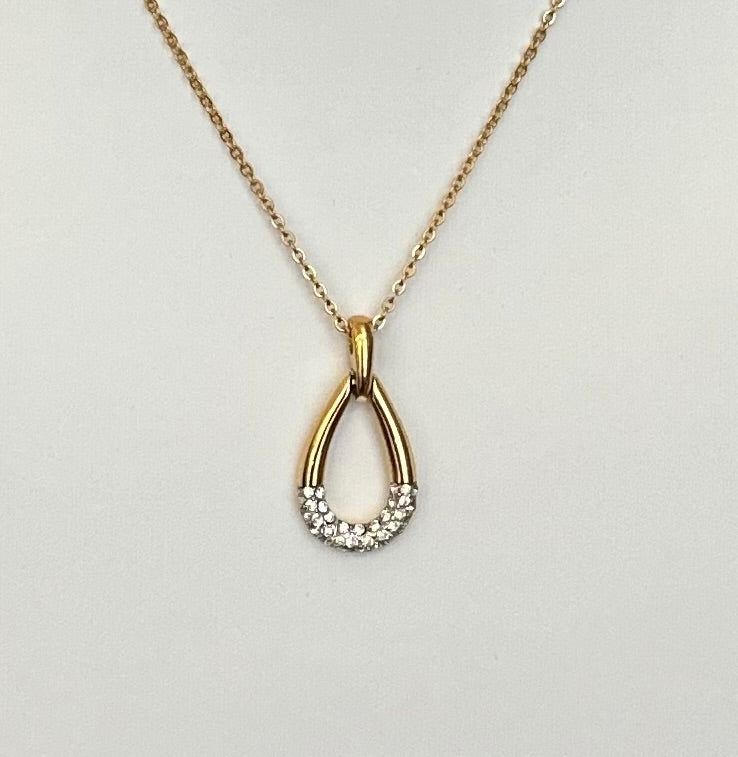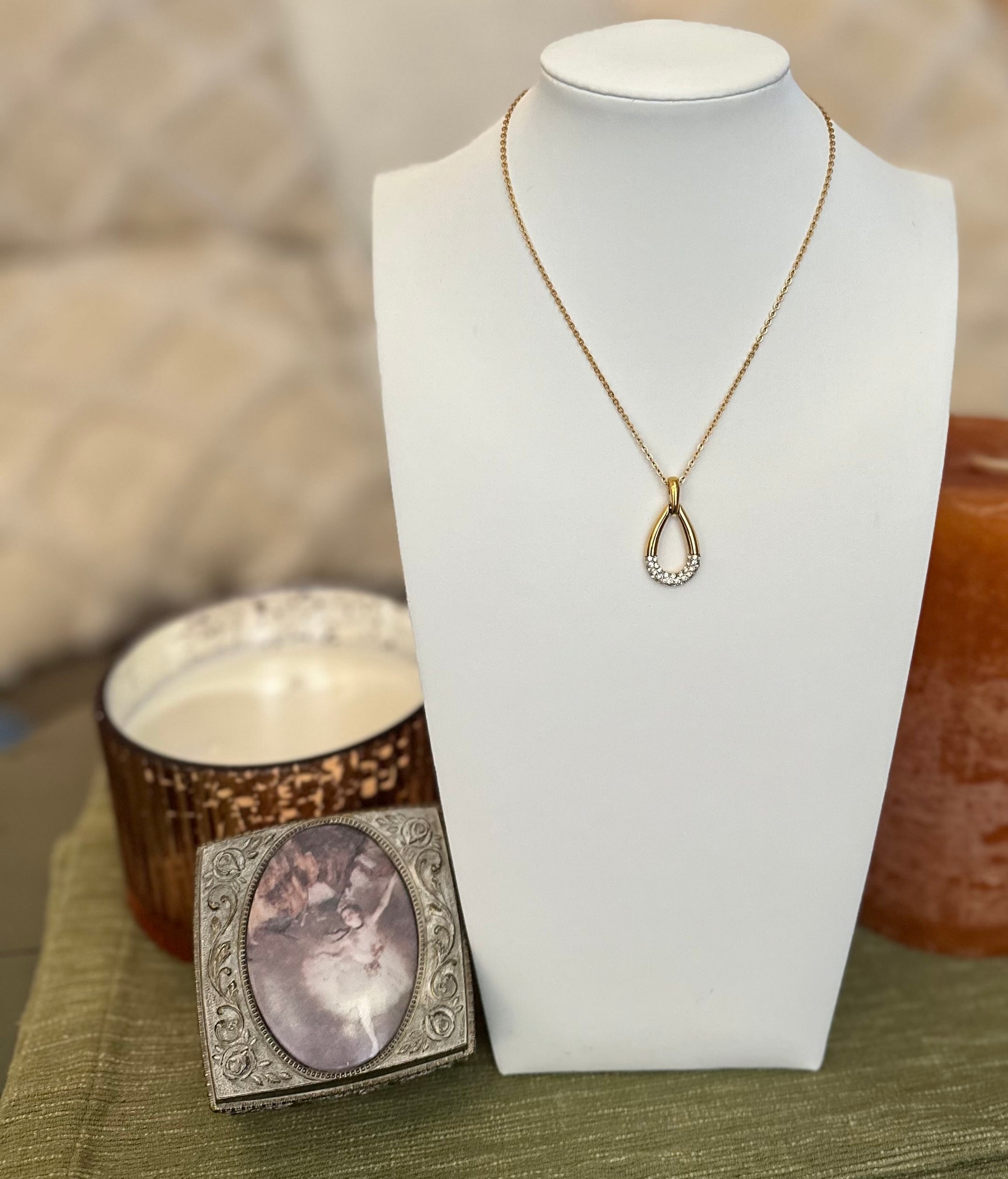 Trifari Gold Tone Cubic Zirconia Teardrop Pendant Necklace Measuring 12” Inches Long and Pendant Is 1” Inches Long. This Is A Idea Necklace For A Little Girl