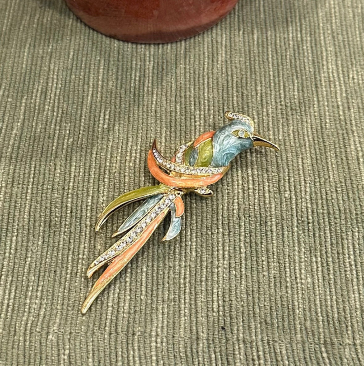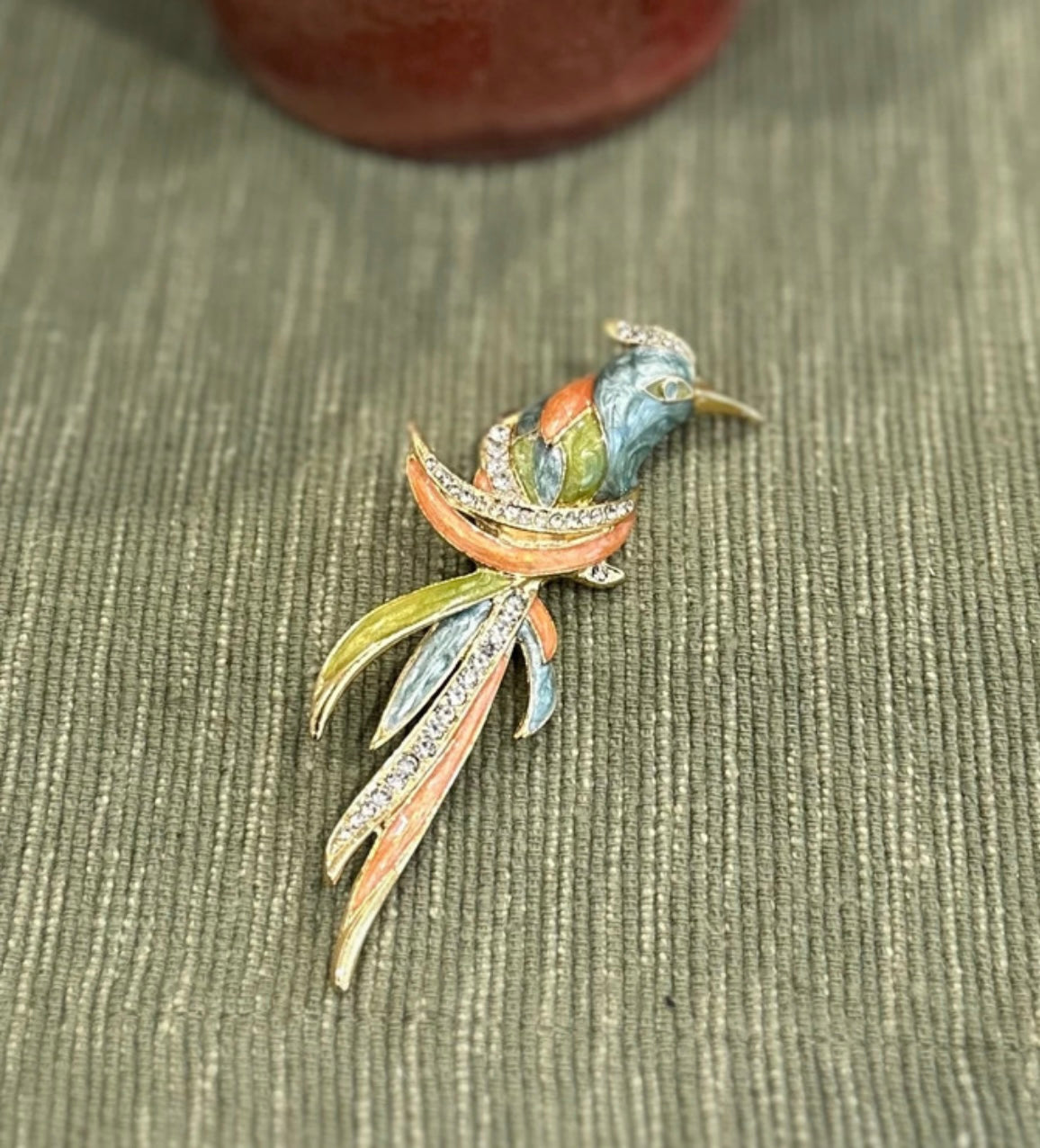 Vintage gold tone multicolor enameled bird brooch |