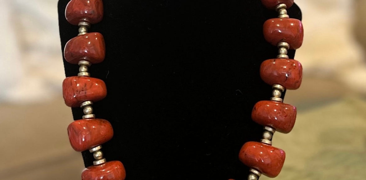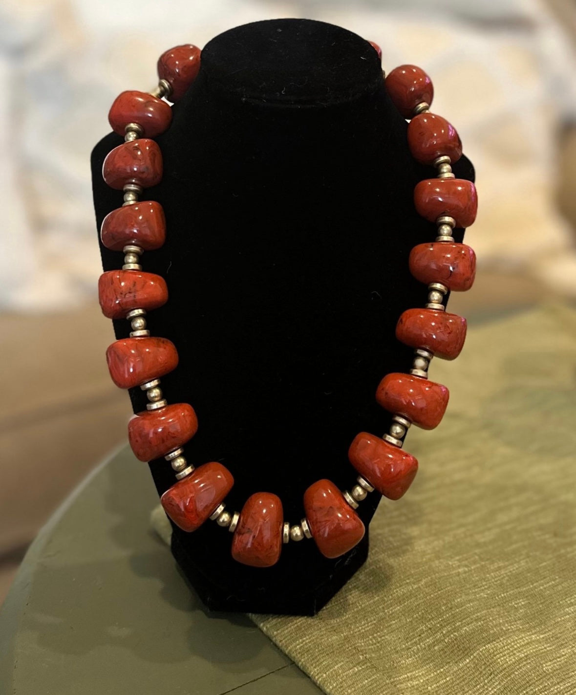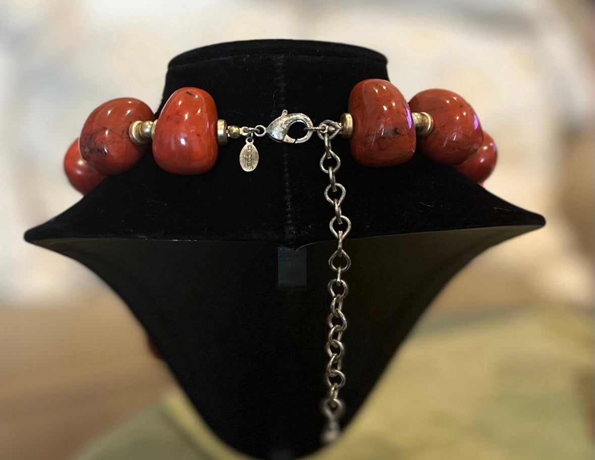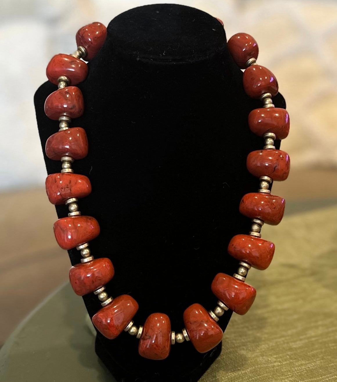 Gorgeous, salmon/coral and matte gold bead 20” inch necklace... by Chico's.