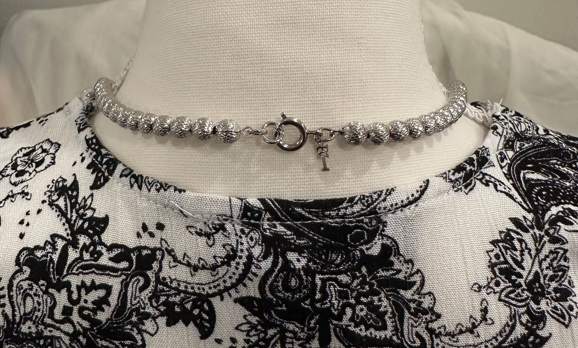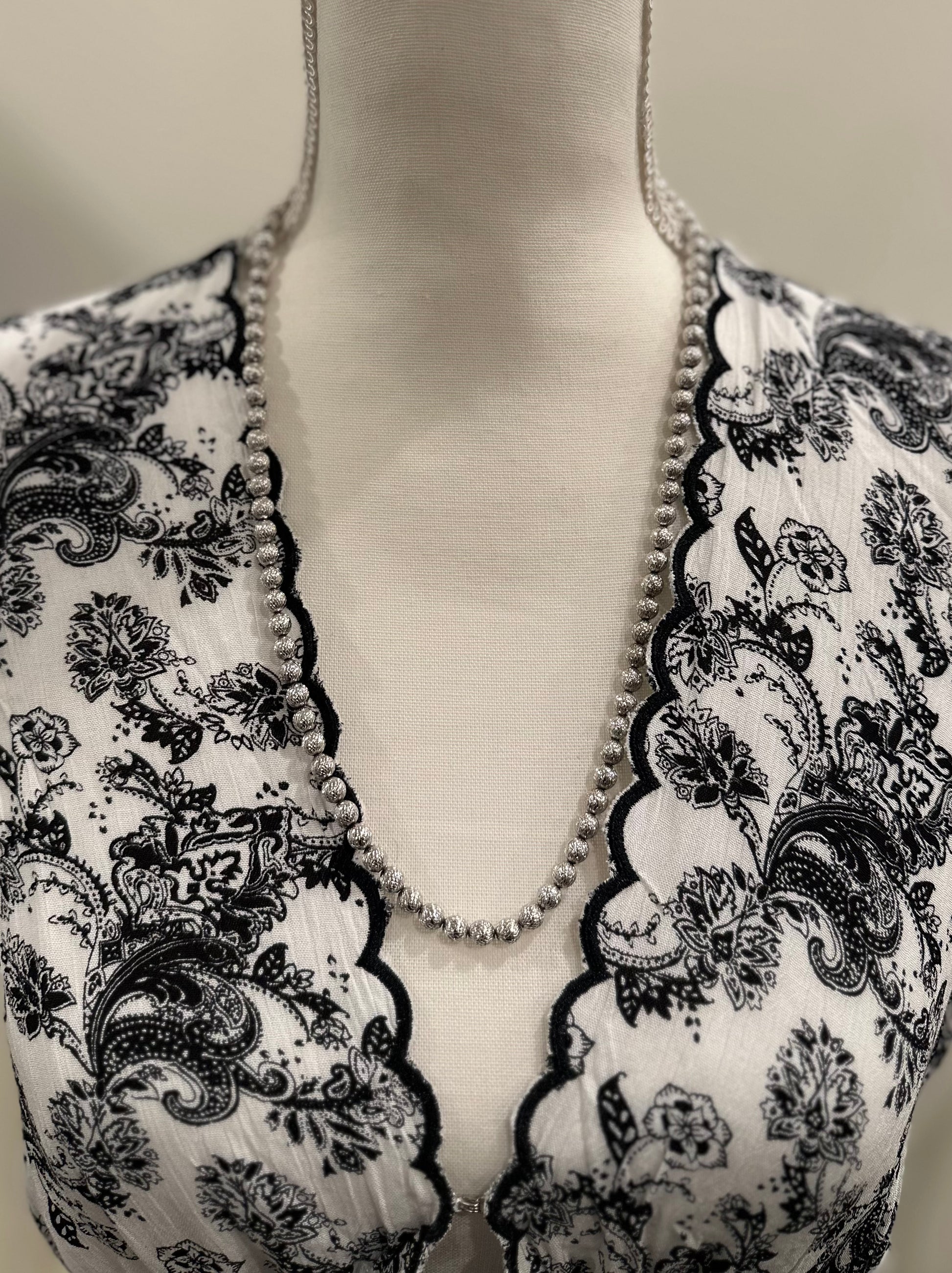 Vintage Silver Tone Metal Beaded Textured Crown Trifari 24" Inch Long Necklace