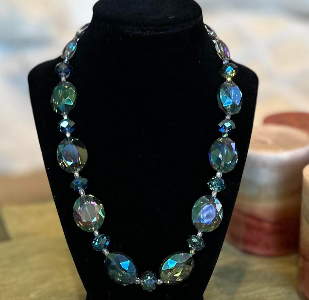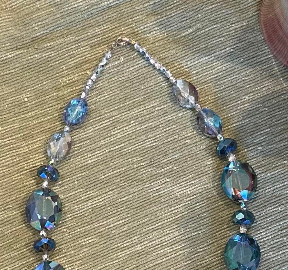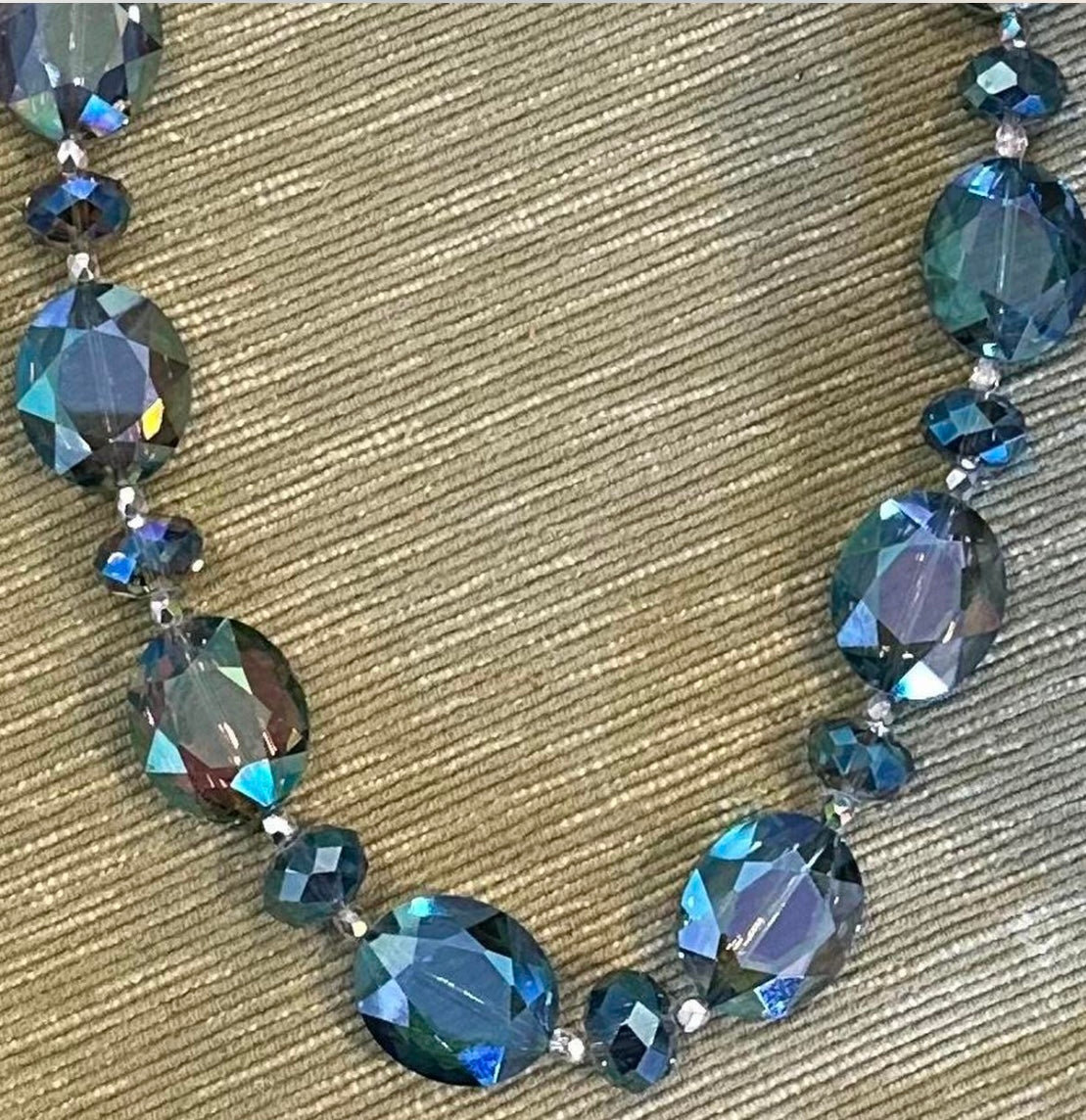 Vintage Faceted Iridescent Blue Glass Beaded Necklace