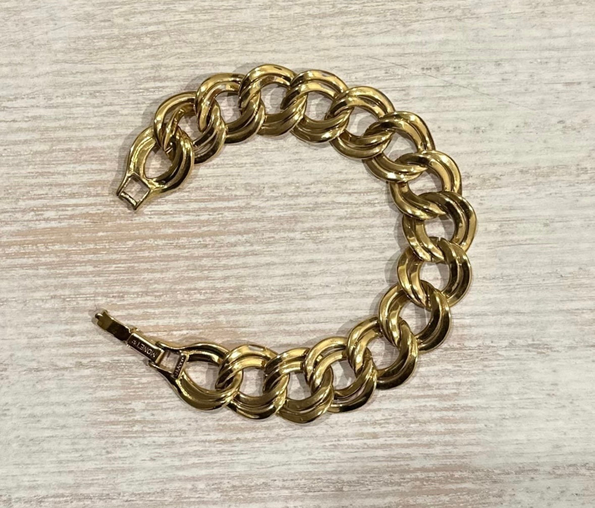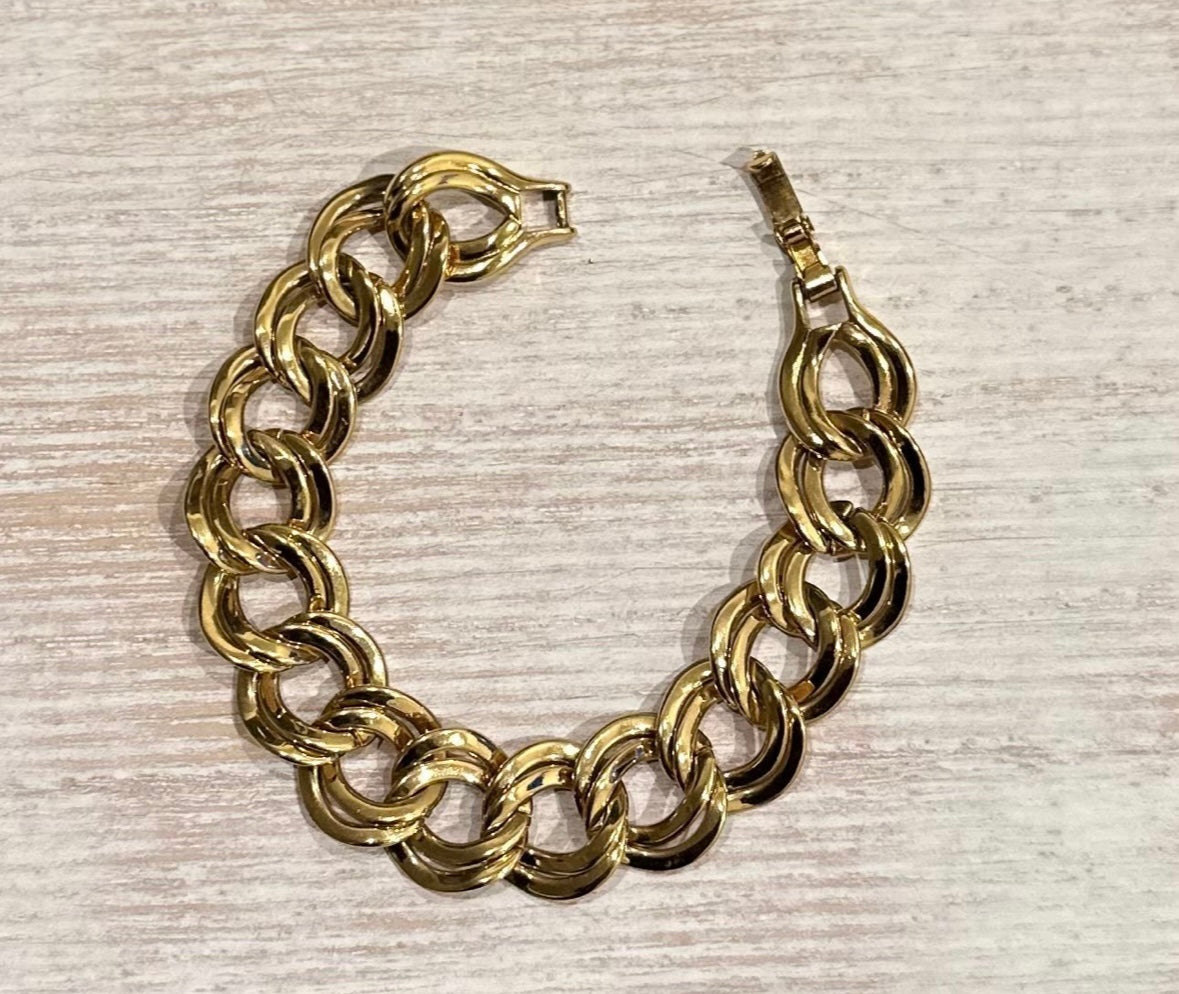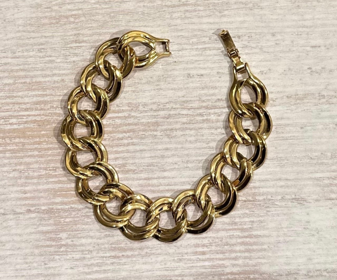 Vintage Monet Double Link Gold Tone 7.5” Inch Bracelet