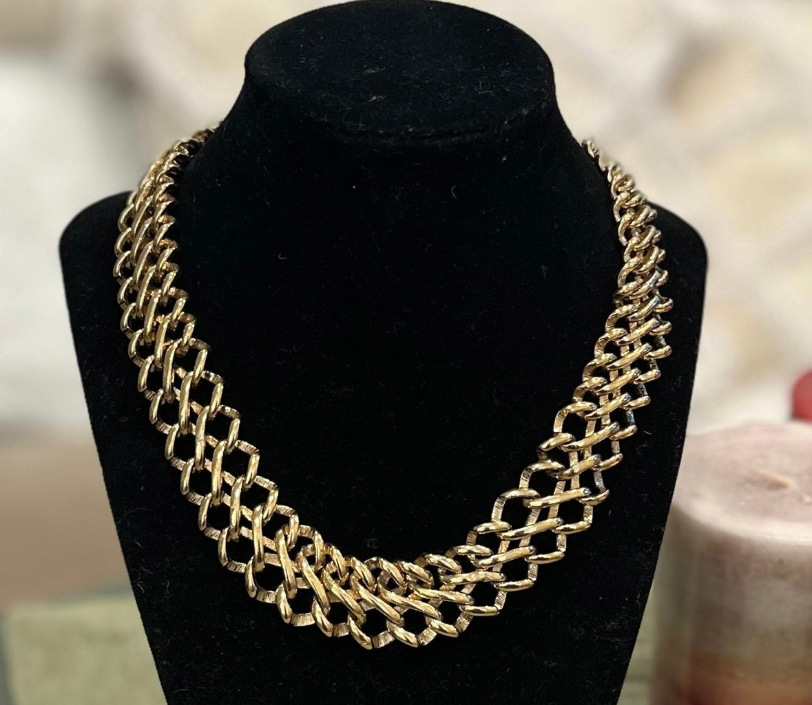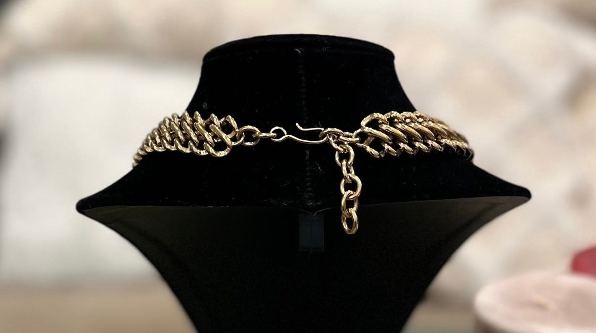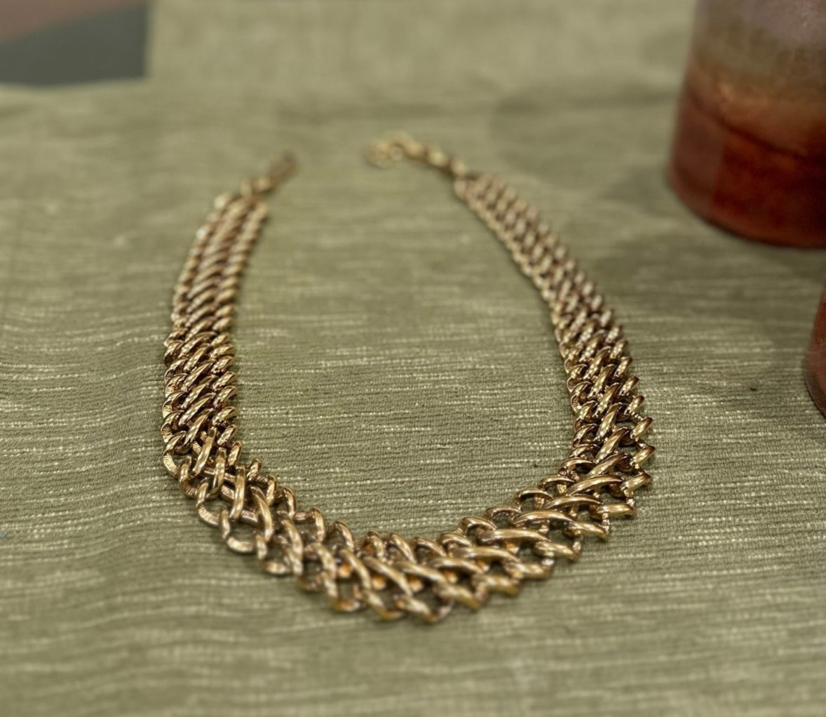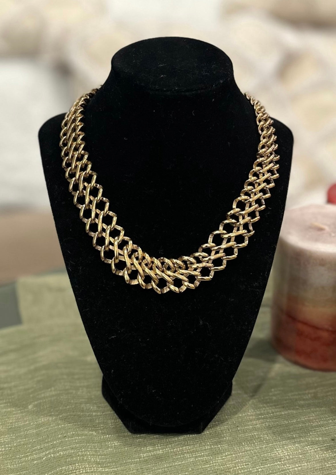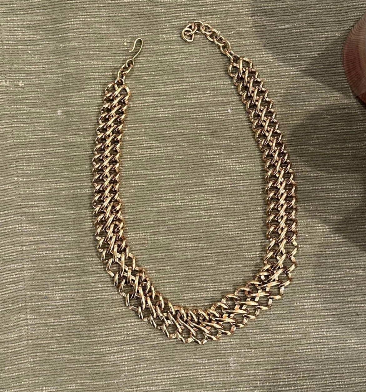 Vintage MONET Chain Choker/Collar 17” Inch Woven Metal Gold Plated Necklace