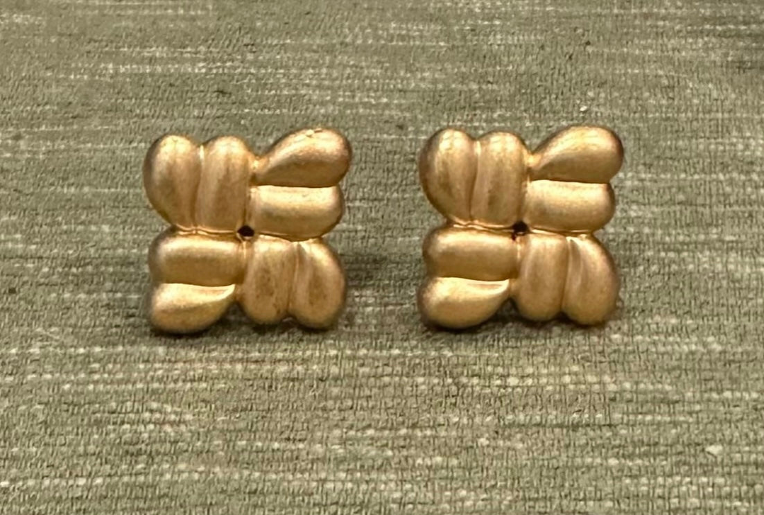 Vintage MONET Gold-Tone Square Statement Clip On Earrings
