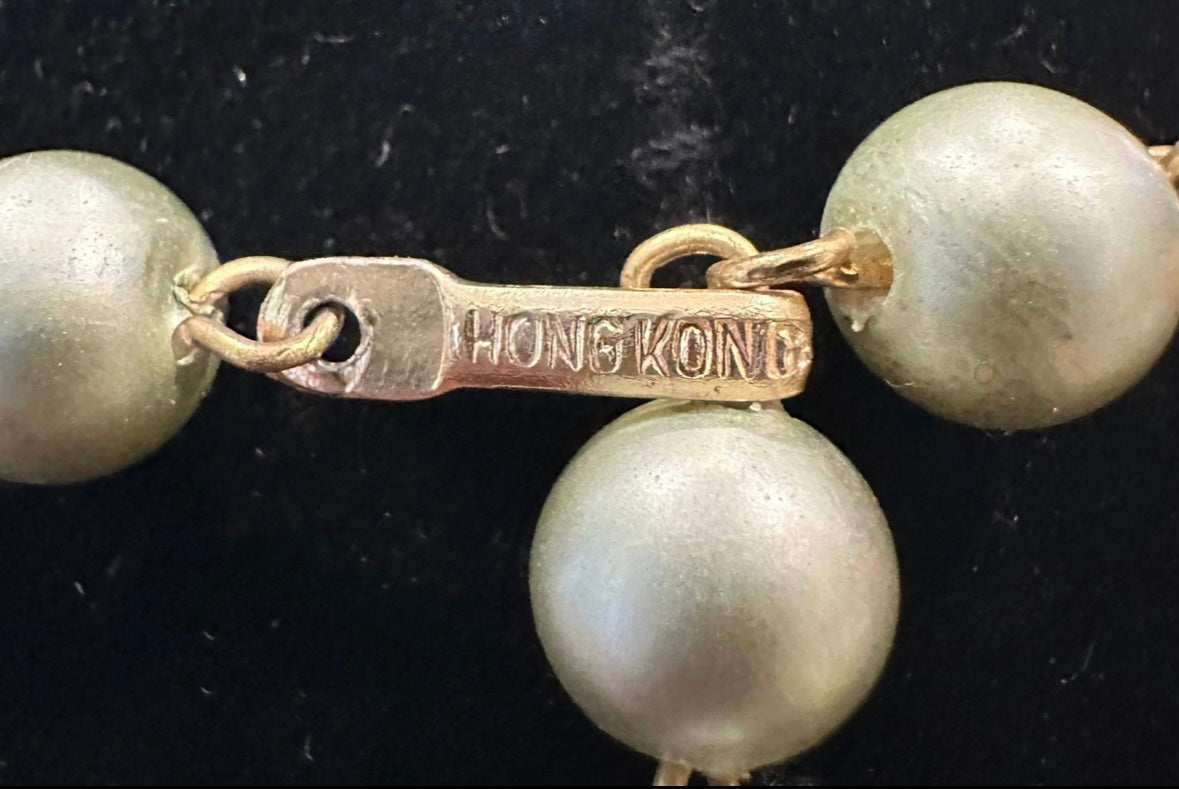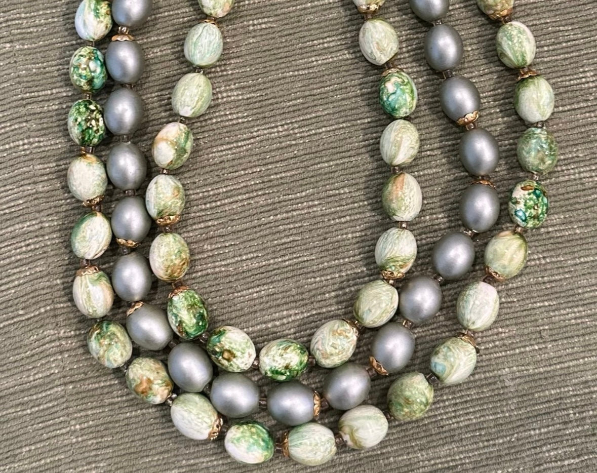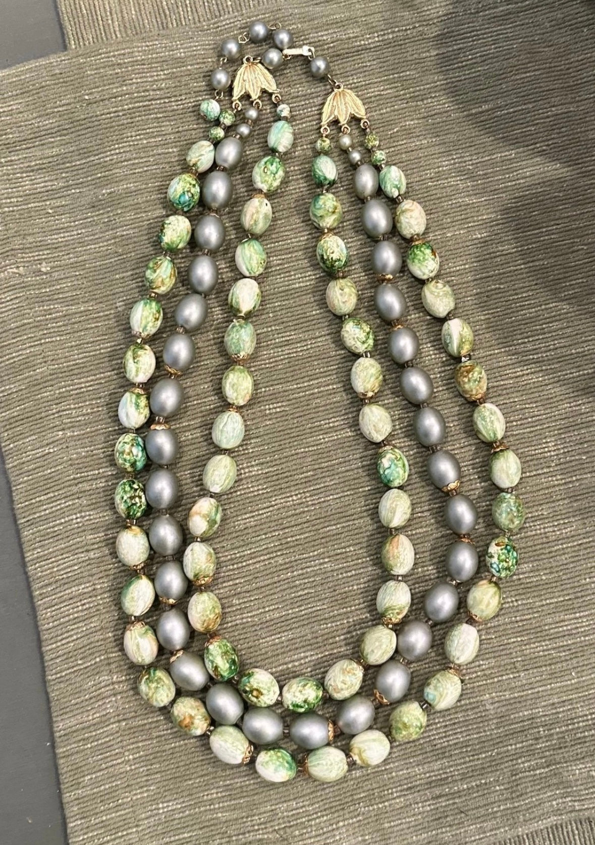 Vintage green plastic bead with gold tone accents & clasp 20" inch necklace