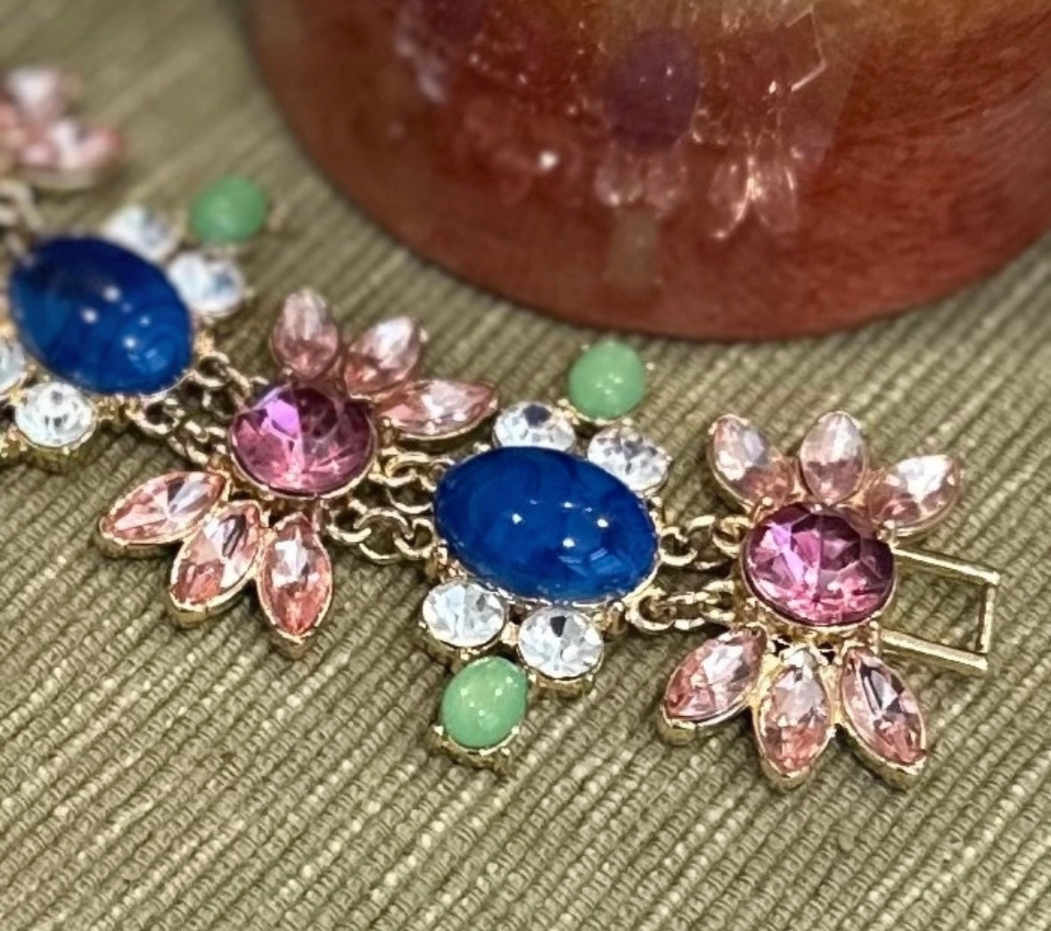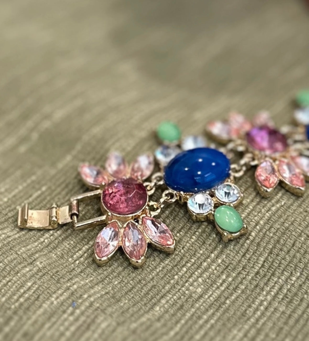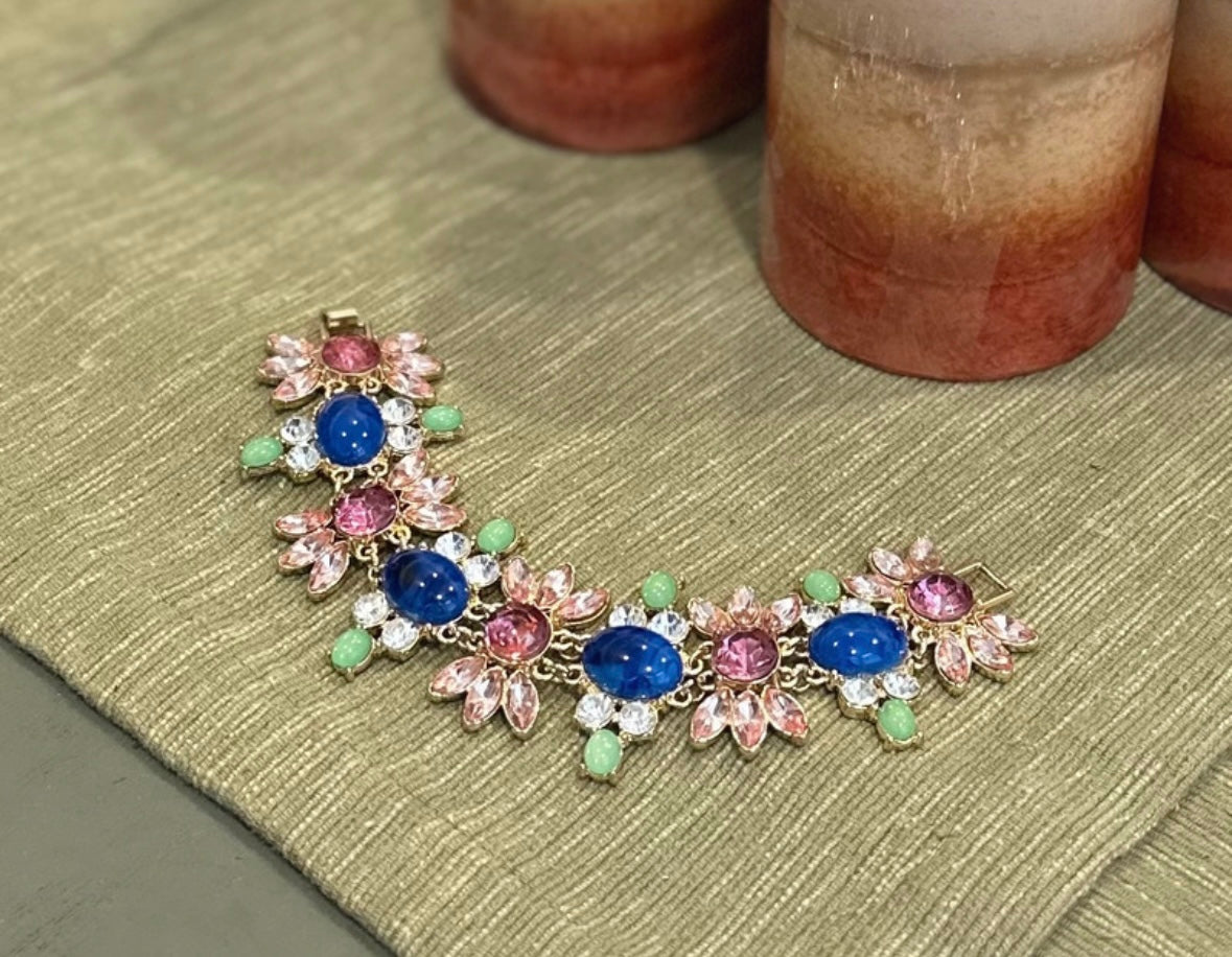 Vintage Talbots multicolor rhinestones statement 4.5” inch long bracelet