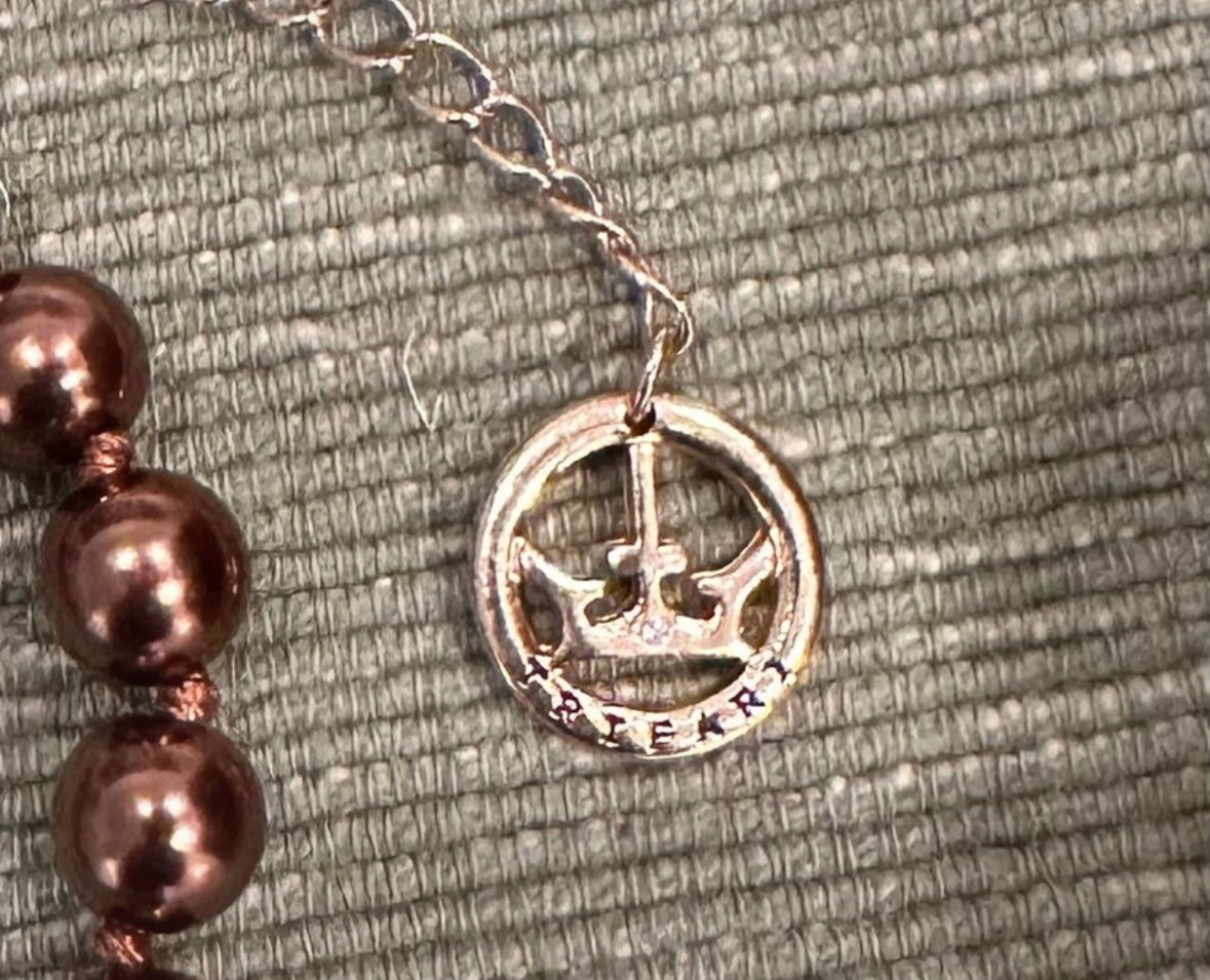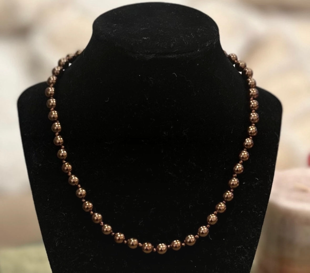 Vintage Crown Trifari Hangtag Strung Faux Copper Pearls 17" Inch Necklace and 2" Inch extension